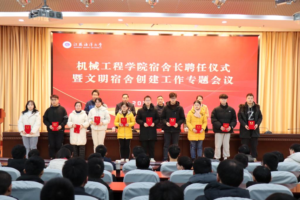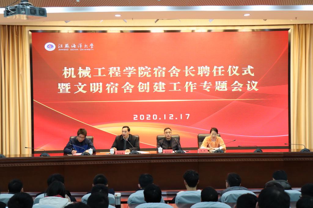 为进一步加强学生宿舍管理,提高学生安全意识,12月17日晚机械工程学院在会议中心黄海厅举行宿舍长聘任仪式暨文明宿舍创建工作专题会议。学生工作处副处长张志浩、宿舍管理科朱琳老师以及学院党委书记陈书法出席会议,辅导员刘征兵主持会议。