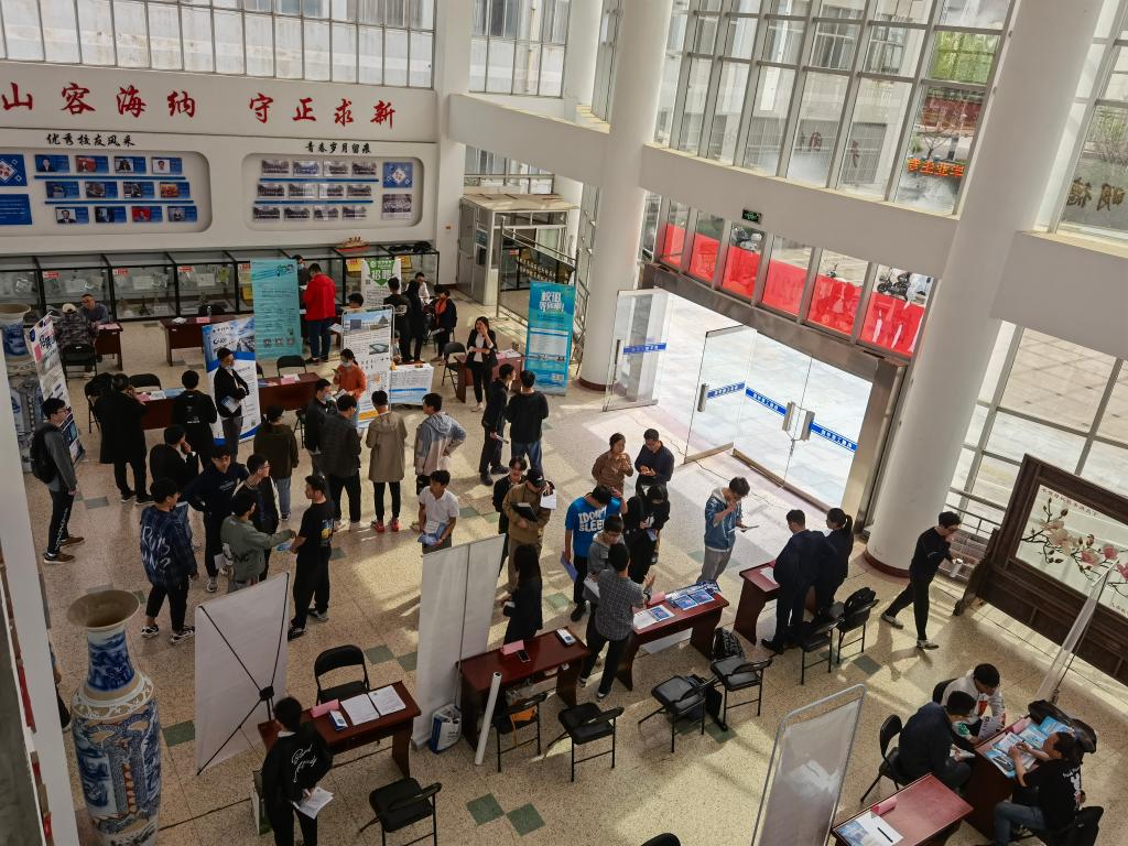 招聘会上,用人单位通过张贴公司宣传海报、发放公司宣传单页、面对面交流等方式就同学们感兴趣的招聘岗位的要求、薪资待遇、个人发展前景等事项与同学们进行了全面深入的沟通。“贵公司这个工作岗位可以提供什么样的发展通道?”“同学你好!我看到你的简历中有过科技竞赛的经历,你从中收获到什么?”供需双方在双选的过程中,相互沟通了解,初步达成了就业意向,准备签约事宜。