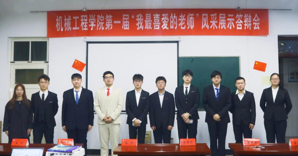 12月16日晚6时,机械工程学院在机械楼N202会议室举办学院第一届“我最喜爱的老师”风采展示答辩会。党委宣传部副部长张兵,教务处副处长徐国想,党委学生工作部副部长、学生处副处长张志浩,校团委副书记王衍,马克思主义学院副院长崔家新应邀出席并担任评委,同时列席本次评选活动的还有机械工程学院院长张元良、党委副书记高勇及辅导员马奔传,孙东晓。