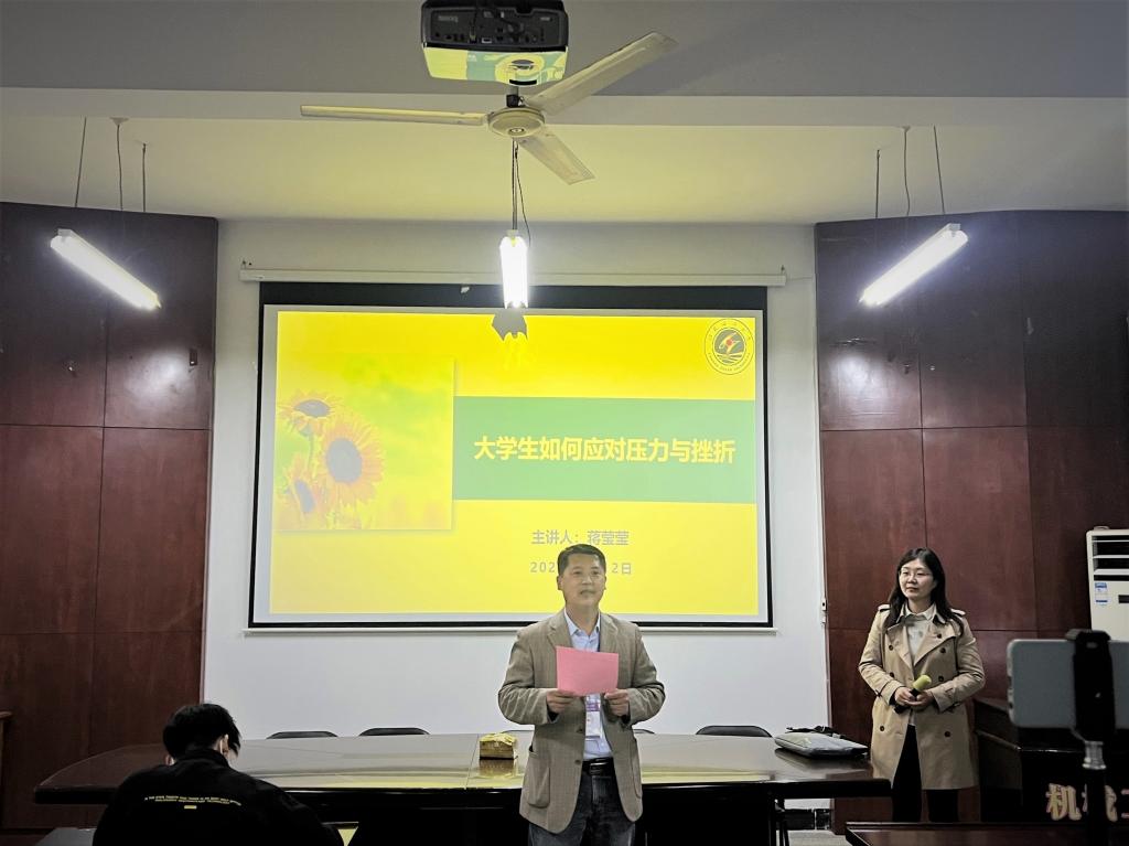 为帮助我院青年大学生从容应对压力与挫折,管理好自己的情绪和言行,5月12日晚,机械工程学院邀请校学生处心理健康教育中心蒋莹莹老师在机械楼601会议室作了题为“大学生如何应对压力与挫折”的专题讲座,这是我院“随心而动,追光而行”系列讲座的第一讲。部分2020级同学来到现场观看,其他本科生和全体研究生通过腾讯会议线上同步观看。