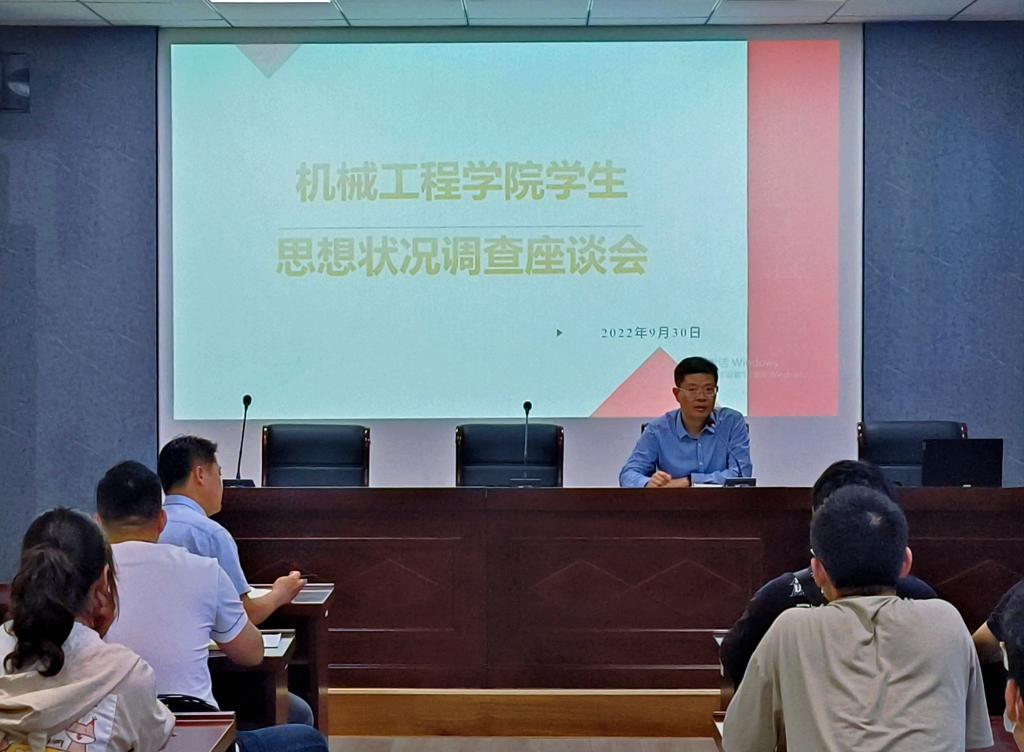 9月30日下午,学院在机械楼N210会议室举行学生思想状况调查座谈会,党委书记王秋玉、副书记高勇、全体辅导员,以及全院班长、团支书和学生组织部分学生骨干、研究生代表参加会议。座谈会上,同学们围绕学校基础设施建设、教育教学管理、学风建设、班级管理、学生日常生活问题等方面积极踊跃发言,提出建议。王秋玉首先感谢了同学们对学院各项工作的支持,并充分肯定了同学们爱校荣校、勇于担当的精神。他表示,学院高度重视同学们提出的意见和建议,将认真梳理、归纳,并及时向相关部门反馈,尽最大努力给同学们创造一个良好的学习、生活环境。王秋玉表示,当前疫情防控形势复杂严峻,党的二十大即将胜利召开,积极营造安全稳定的校园环境,是这段时间一项非常重要的工作。作为学生干部要发挥模范带头作用,及时掌握所在班级学生的思想状况,高度关注心理异常学生群体;面对热点问题要理性思考、理性表达,并积极为学校、学院发展贡献自身力量和青春智慧。