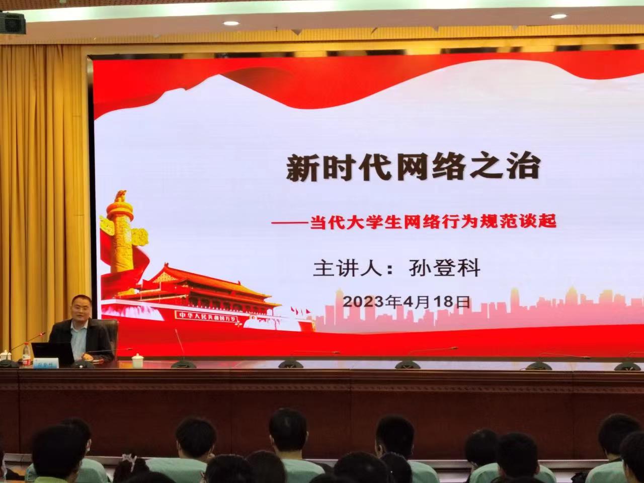 随后,孙登科以网络道德的内涵含义为出发点,从思想认知和网络行为两个层面阐述了网络行为道德失范的表现。讲座过程中,他选取了颇具代表性的典型案例,列举了不当言论行为、侮辱、诽谤行为、侵犯个人信息行为、浏览色情网页、传播淫秽物品行为、计算机系统类型犯罪行为等不同类型案例的案情经过、法律条款、裁判结果,提醒同学们规范网络言行,不要触碰法律底线,对在场学生起到了警示教育作用。最后,他号召同学们坚定理想信念,坚守政治立场;恪守法律底线,遵守校纪校规;弘扬社会公德,崇尚文明新风;畅想时代旋律,传播网络正气;增强防范意识,维护网络安全。