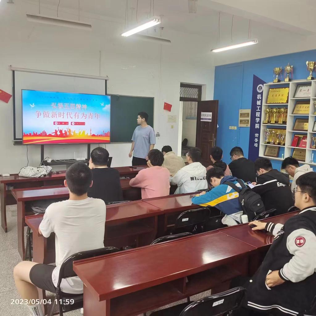 5月4日,组织学院团学组织成员和大一大二班级团支书,在机械楼N202开展“学讲话精神,树理想信念”主题活动,学习习近平总书记对青年的殷殷寄语。在学习中领悟作为新时代大学生的责任和使命,把个人的理想信念融入党和国家的事业发展当中,让青春在火热实践中绽放绚丽之花。