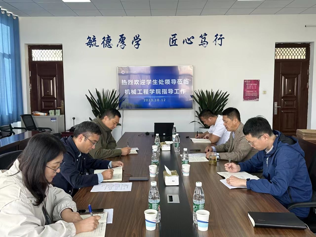 10月12日上午,校党委学生工作部部长、学生工作处处长陈德翼,学生工作处副处长、心理健康教育中心主任张岳,心理健康教育科科长蒋莹莹,一行三人来到机械工程学院就大学生心理健康工作开展专题调研。学院党委副书记高勇、学工办副主任陈晓龙、团委负责人马奔传、辅导员孙东晓参加调研交流。