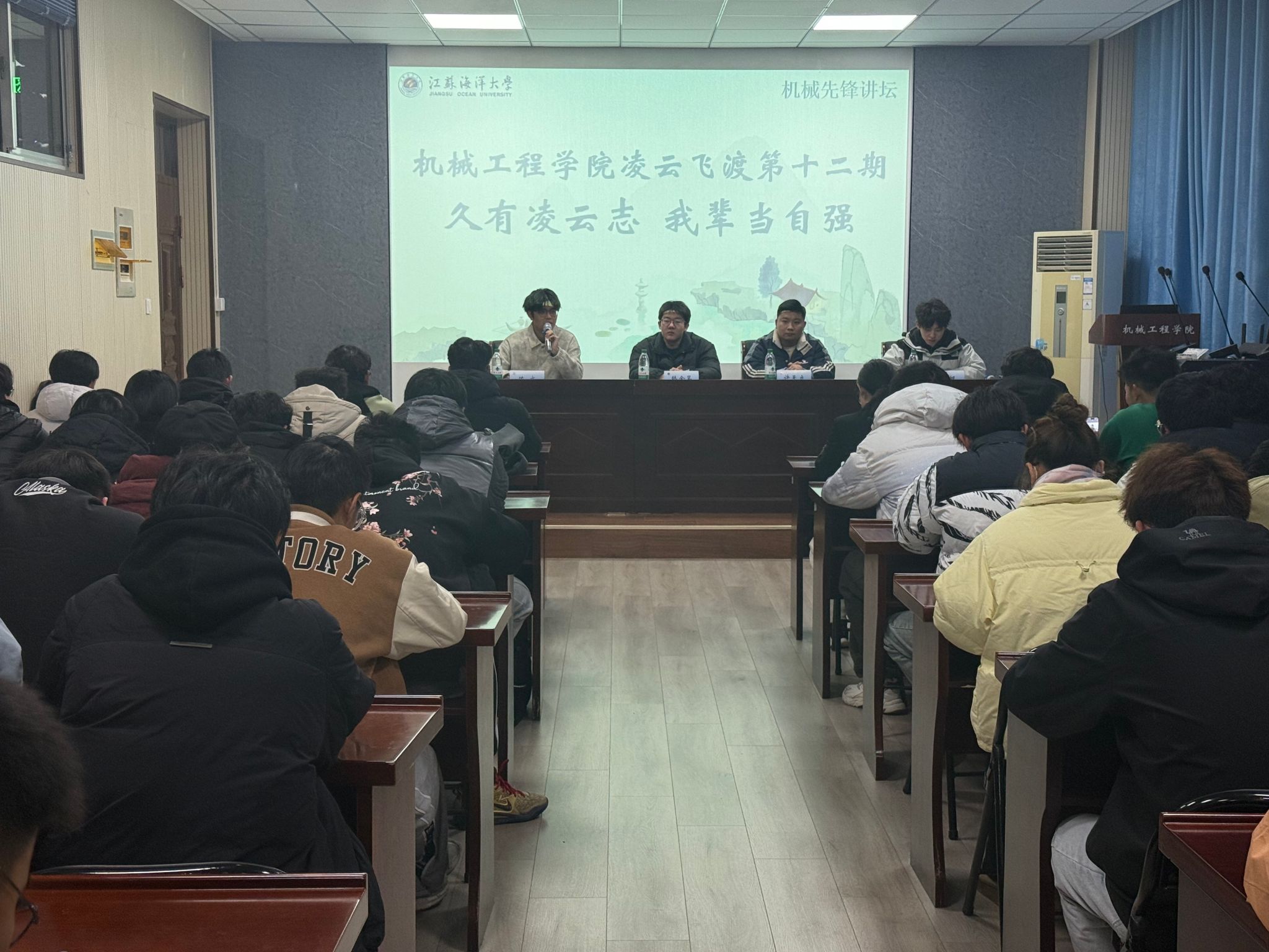 11月26日晚,机械工程学院在机械楼N210举办第十二期“凌云飞渡”访谈活动暨机械先锋讲坛—久有凌云志,我辈当自强。学生代表陈成、韩金昊、闫帆和许天立受邀参加。
