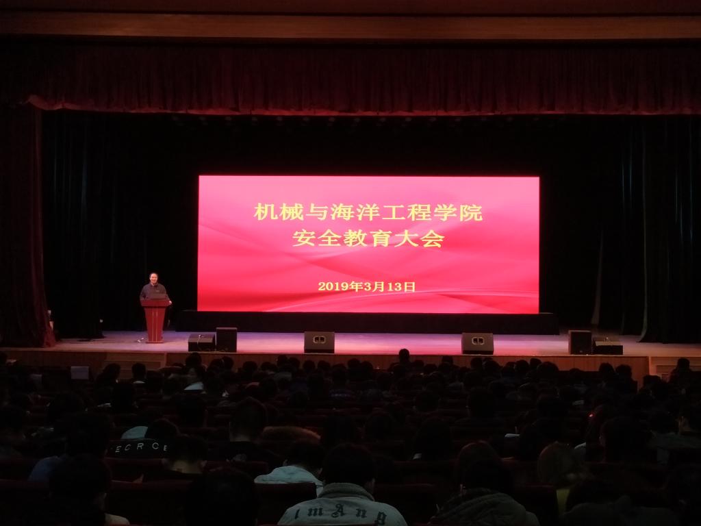 为贯彻全校安全工作会议精神及要求,增强大学生的安全防范意识,3月13日18:30,机械与海洋工程学院在大礼堂召开安全教育大会。学院党委书记毛纪登、学生处副处长张志浩、辅导员以及全院学生参加会议,会议由学院党委副书记赵求勇主持。