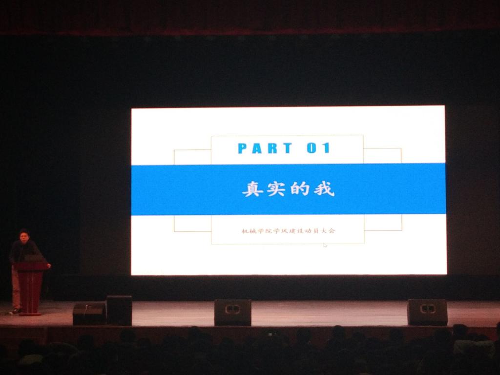 会上,赵求勇从“真正的我”、“以前的我”、“现在的我”、“我怎么会这样”、“我该怎么做”五个方面,列举了我院目前的学风现状,分析了学风问题的成因,并就今后如何加强学风建设从理想信念、专业思想、学习态度、课堂纪律、文明举止等方面提出了明确的要求。期间,一组组旷课、缺勤、补考率、四级通过率、学位授予率等数据和图表,直指了我院学风建设中的不足,也触动了部分学习后进学生的心灵;一个个成功人士的励志案例,激发了同学们努力学习的热情;一句句苦口婆心的劝导,唤醒了那些沉迷网络、学业荒废的学生。
