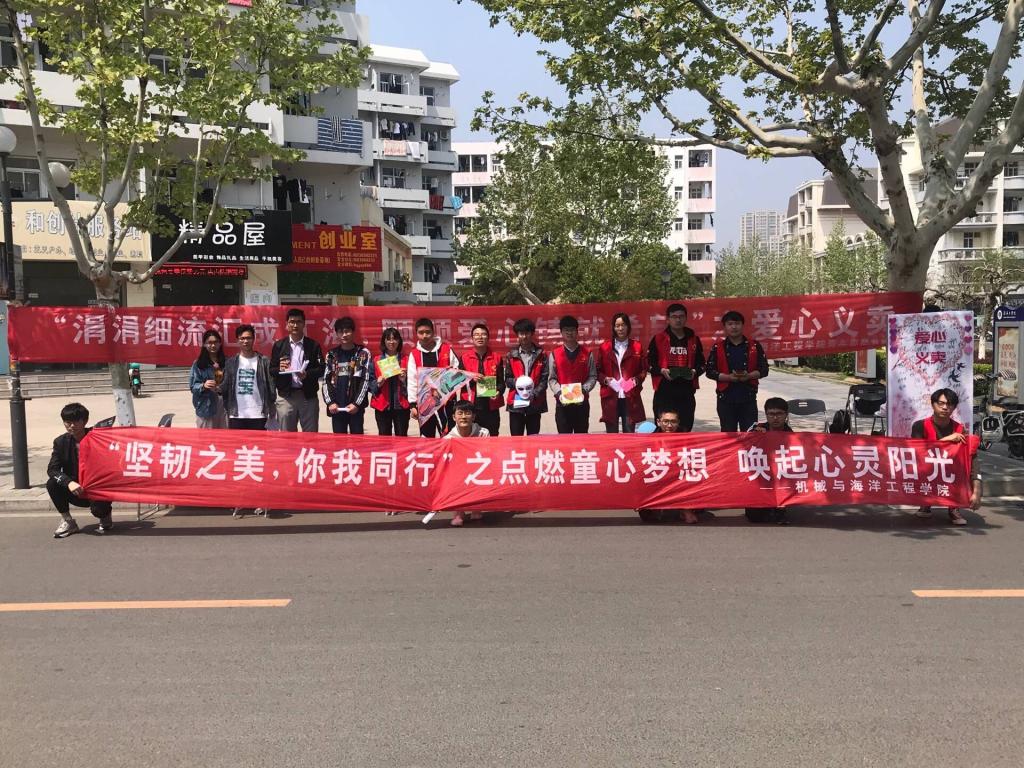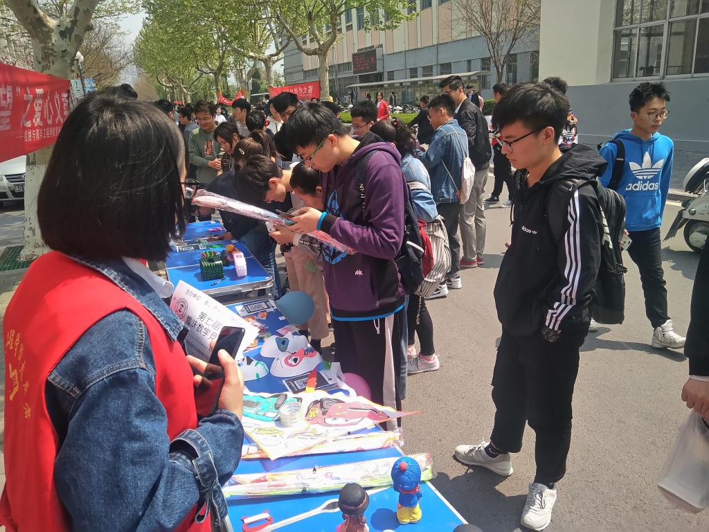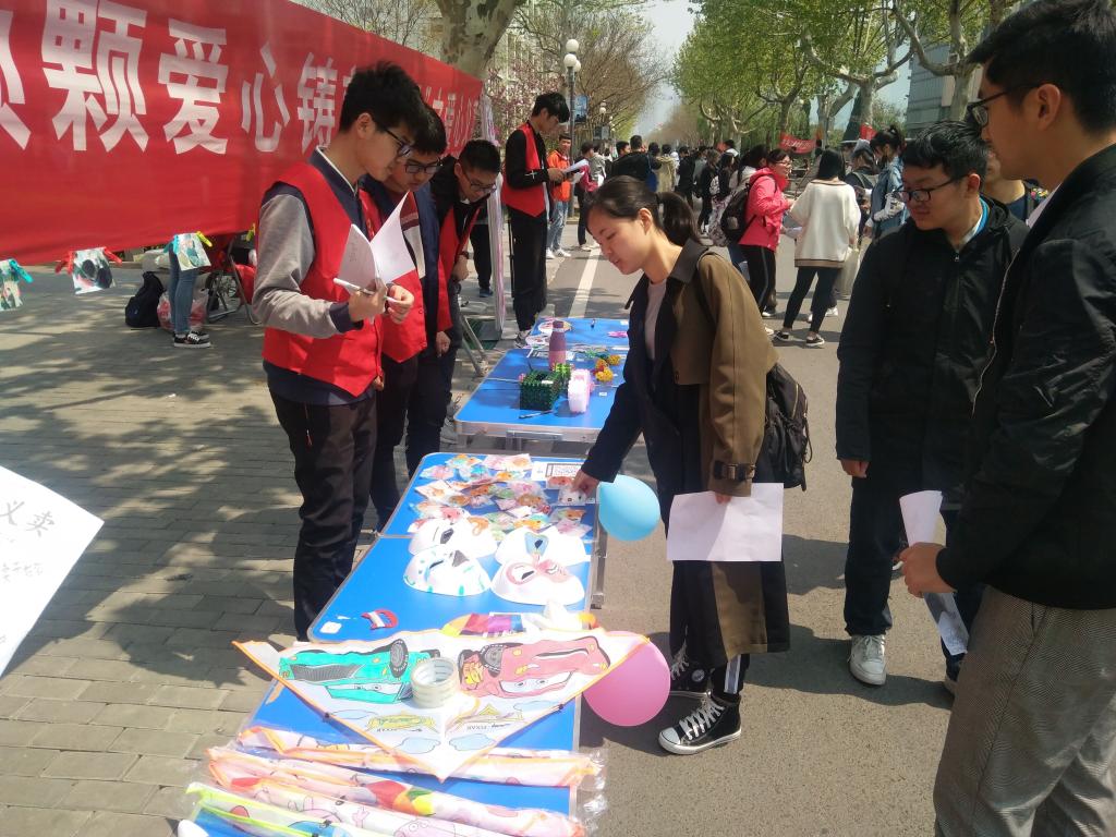 4月7日中午,淮海工学院苍梧校区人来人往,熙熙攘攘,身穿红色服装的机械与海洋工程学院的志愿者们在人群中分外扎眼,筹备近两个月的连云港儿童福利院手工作品义卖活动正式开始了。