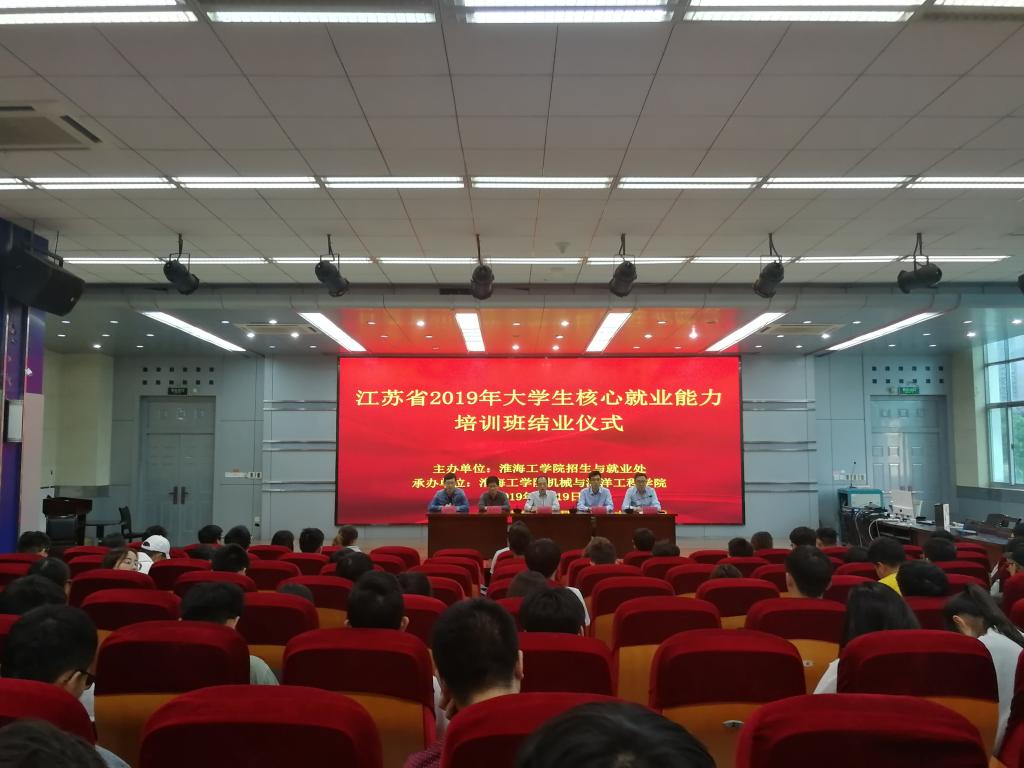 5月19日,江苏省2019年大学生核心就业能力培训活动在我校艺术楼报告厅落下帷幕。本次培训由江苏省高校招生就业指导服务中心主办,淮海工学院招生与就业处、机械与海洋工程学院承办。培训邀请来自河海大学、江苏大学等6所高校的张萍萍、徐璐、石家驹、王志杰、王静和施佳6位核心就业能力培训讲师为我校2020届16个学院的100名家庭困难毕业生授课。