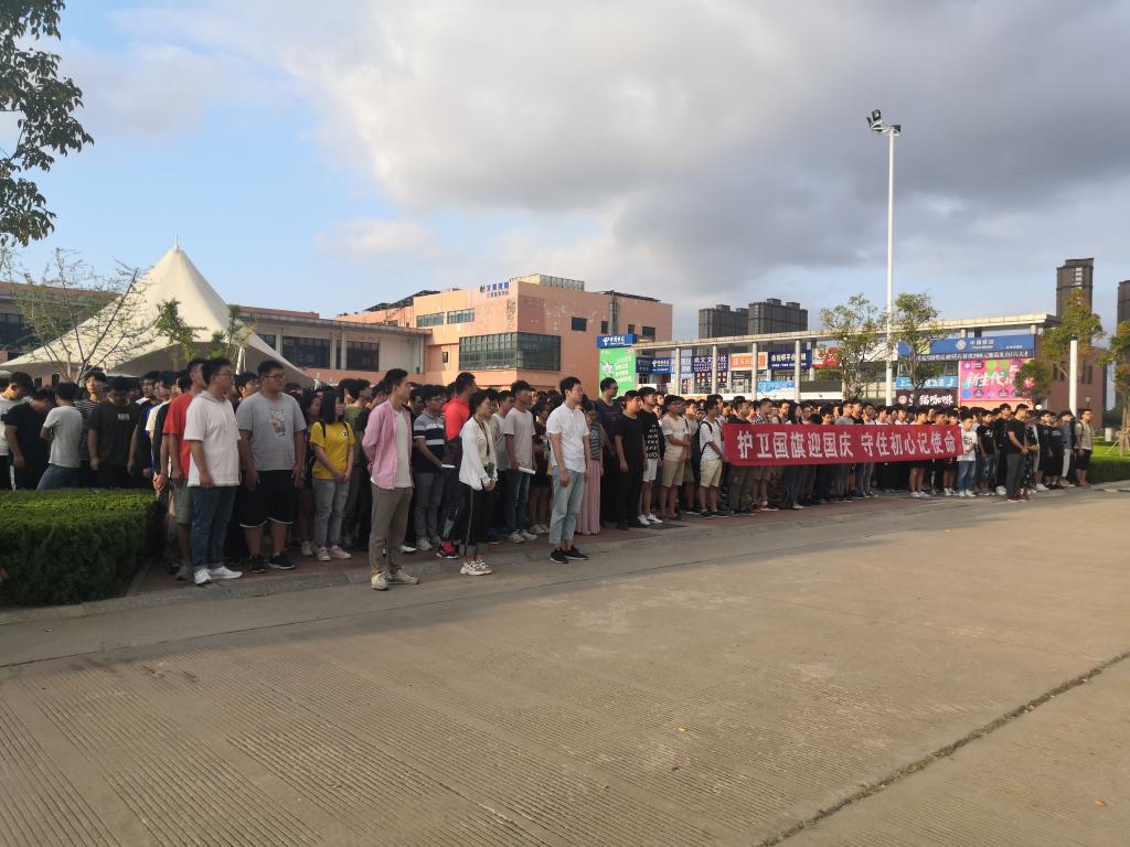 七月流火,八月未央。8月26日清晨,机械与海洋工程学院在苍梧校区举行“护卫国旗迎国庆、守住初心记使命”主题升旗仪式。学院党政领导陈书法、张元良、赵求勇、于雪梅、贺毅强,辅导员及全体学生参加了此次升旗仪式。