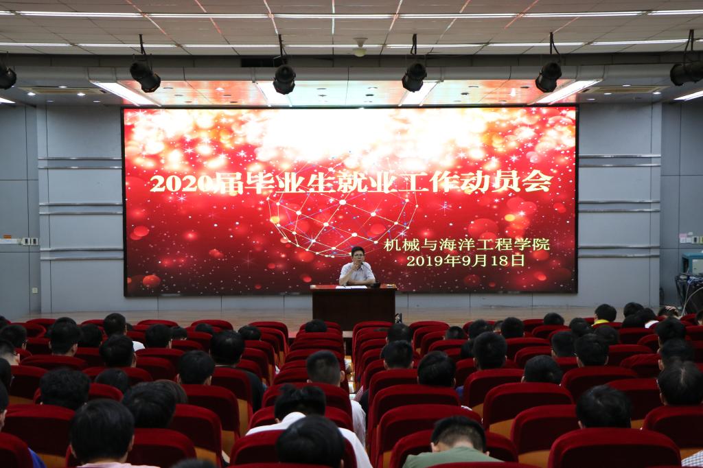 为做好毕业生就业工作,引导学生积极合理进行职业定位,9月18日,机械与海洋工程学院在艺术楼报告厅举行2020届毕业生就业工作动员会。学院党委副书记赵求勇给两百余名就业学生带来了一堂生动的就业指导课,毕业班班主任、辅导员老师参加了动员会。