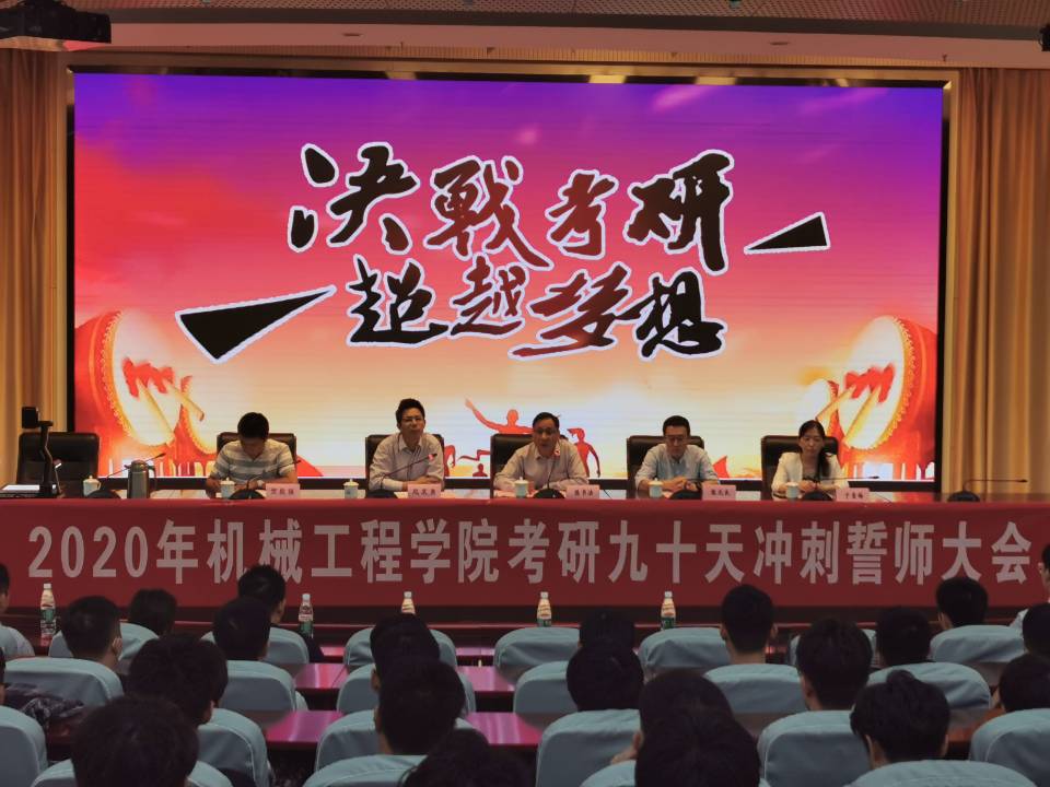 9月29日晚19时,机械工程学院2017级考研誓师大会在苍梧校区会议中心黄海厅举行。机械工程学院党委书记陈书法、院长张元良,副院长于雪梅、贺毅强,以及全体辅导员和17级班主任老师出席了本次大会。大会还特别邀请了考研名师汤家凤老师,为参加活动的17级、18级有意向考研的学生答疑解惑。