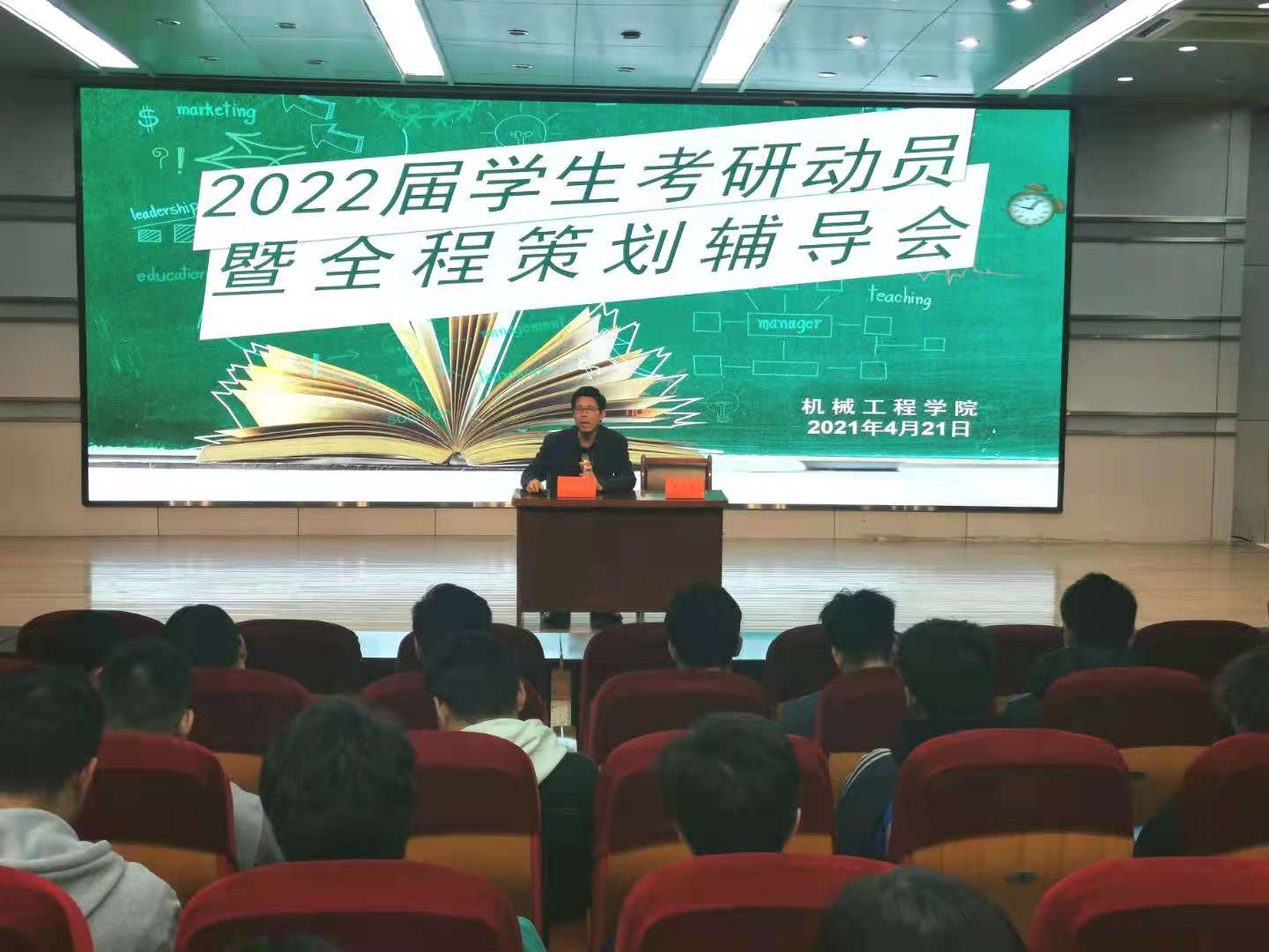 4月21日晚上6点,机械工程学院在艺术楼报告厅举办了2022届学生考研动员暨全程策划辅导会。辅导会由学院党委副书记赵求勇、万学教育考研指导名师韩世奇主讲,2018级有意向考研的学生到场参会。辅导会由院学工办主任阎文婕主持。