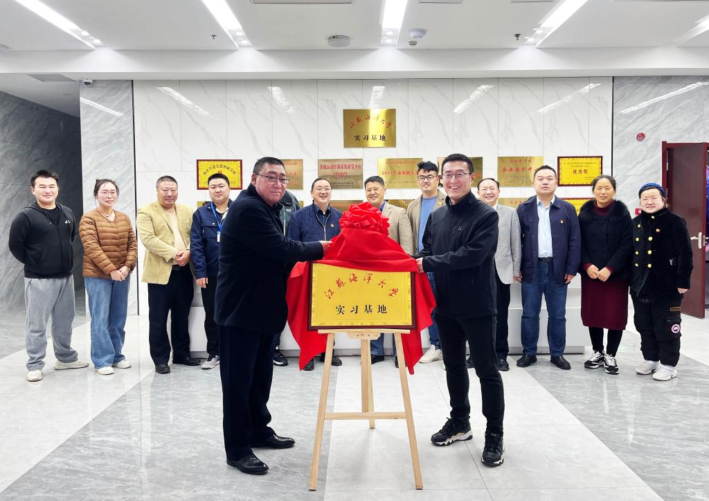 参观结束后,机械电子工程系党支部党员来到江苏海宏智能科技有限公司,就双方党建和业务工作进行了深入交流。会上,机械工程学院党委副书记高勇与连云港海通汽车服务有限公司党委书记赵立喜共同为校企共建党建创新实践活动基地揭牌。机械工程学院院长张元良和连云港海通汽车服务有限公司董事长赵立喜共同为江苏海洋大学海宏实习基地揭牌。随后,高勇副书记和赵立喜书记分别介绍了机械工程学院党委和连云港海通汽车服务有限公司党委的党建工作开展情况,双方表示,希望加强党建工作交流,着力推动以高质量党建引领高质量发展。院长张元良介绍了近年来江苏海洋大学与连云港海宏智能科技有限公司开展的产学研合作及实习基地建设情况,最后双方围绕党建工作特色做法、产学研如何开展等内容进行了深入交流,分享了相关工作经验。
