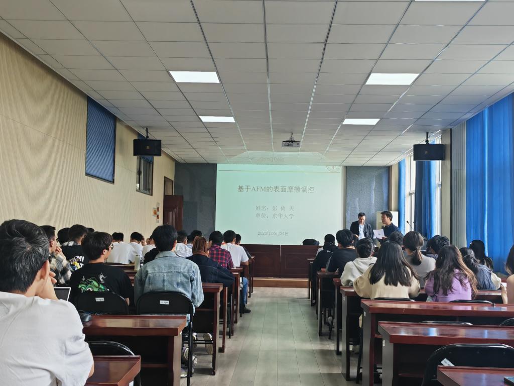 5月24日下午,东华大学彭倚天教授应邀在我院会议中心N210,为我院师生作了题为“基于AFM的二维材料表界面摩擦调控”的学术报告,报告由学院副院长贺毅强教授主持。