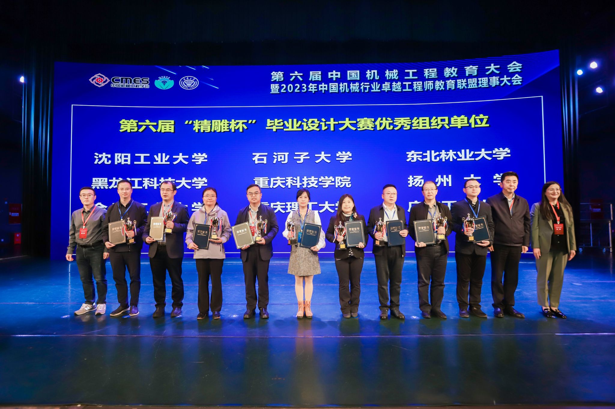 大会主旨报告阶段,来自国内外学科的院士和专家学者带来6场精彩的主题报告。教育部高等教育司理工科教育处处长、一级调研员侯永峰,中国工程院院士、华东理工大学教授涂善东,重庆大学党委常务副书记王时龙,浙江大学机器人研究院常务副院长陆国栋,华中科技大学国家重点实验室常务副主任陈学东,德国国家科学与工程院院士Prof.Wolfgang Peukert等6位国内外知名的学科院士和专家学者聚焦深化工程教育改革、推进全面工程教育、卓越人才多维融合培养模式、工程教育人才创新能力培养、前沿粒子技术等主题,多维度探讨未来工程教育发展模式和未来工程教育的人才培养体系。大会进行了优秀组织工作表彰,联盟秘书长刘新现场宣读了关于第六届“精雕杯”毕业设计大赛暨2023年教育大会优秀组织工作表彰的决定。副校长张元良作为颁奖嘉宾为获奖高校颁发了荣誉证书和奖杯。
