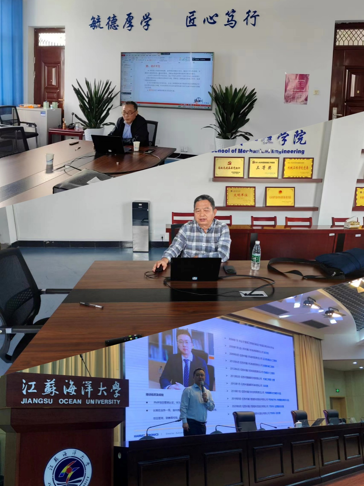 学院邀请了江苏天明机械有限公司总工程师、江苏海洋大学机械类专业教学指导委员会主任委员、省产业教授杨庆洪、江苏鹰游纺机有限公司总工程师郑江文、连云港黄海勘探技术有限公司总工程师陈赤武、大陆汽车电子(连云港)有限公司研发经理张军、苏州瀚川智能科技有限公司汽车事业部总裁杭春华、智能制造产业学院教授周建来、刘成文、机械原理课程负责人席平原进行现场专家报告,分别对矿用重型卡车制造、纺织机械自动化、深海勘探装备研发、汽车零件自动化生产、智能装备国产化、机械切削加工、精益生产管控、汽车原理构造等进行了专题报告,报告内容涵盖了机械、机电、计算机、机器人、自动化等学科知识,提升了学生对学科专业知识的交叉与融合。