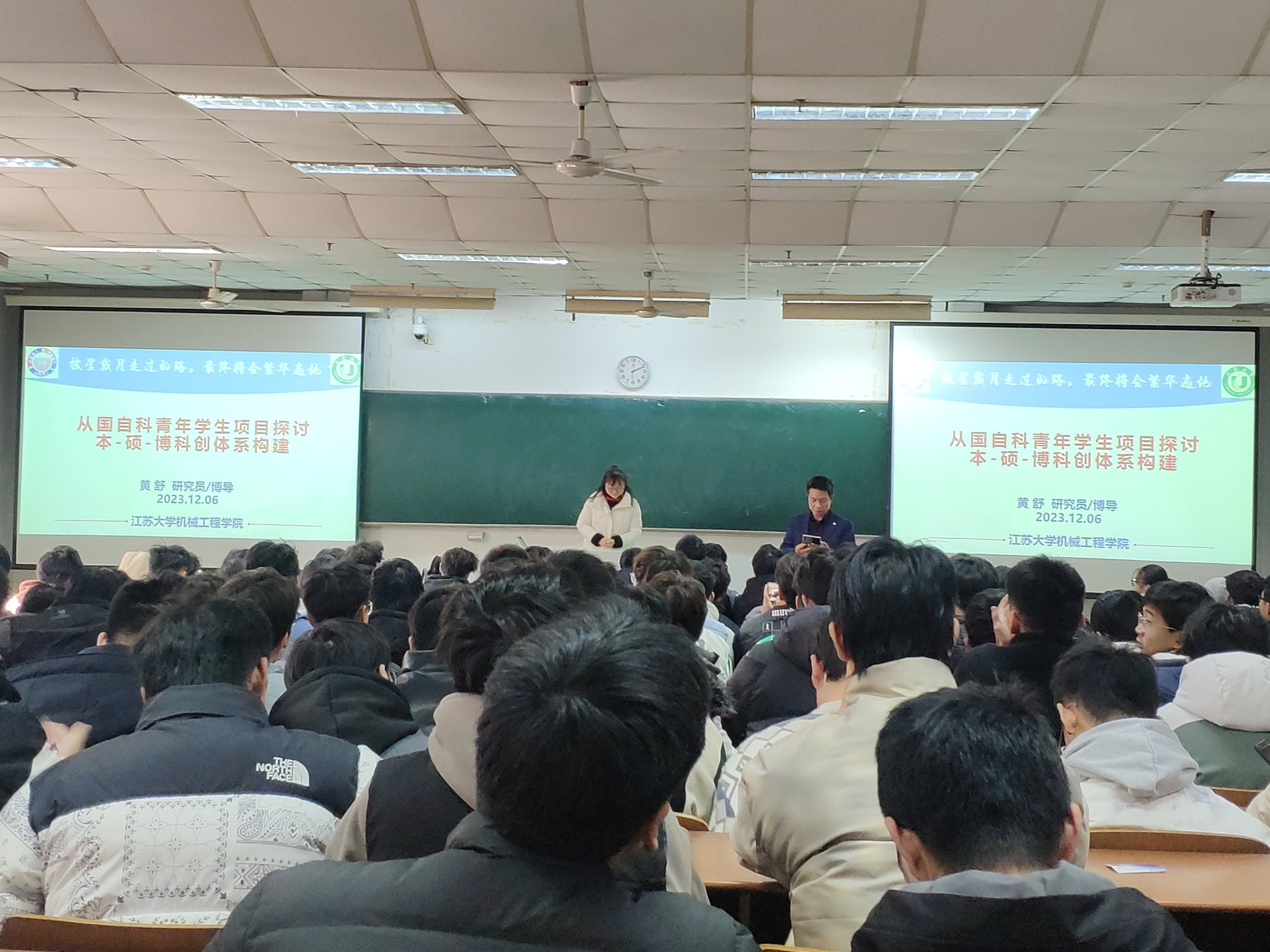 12月6日下午,机械工程学院第108讲“机械讲坛”在通灌校区至善102举行,江苏大学黄舒教授受邀为本次讲坛作报告,报告主题为“从国自科青年学生项目探讨本-硕-博科创体系构建”。报告会由机械工程学院副院长贺毅强主持。学院2023级新生聆听了报告。