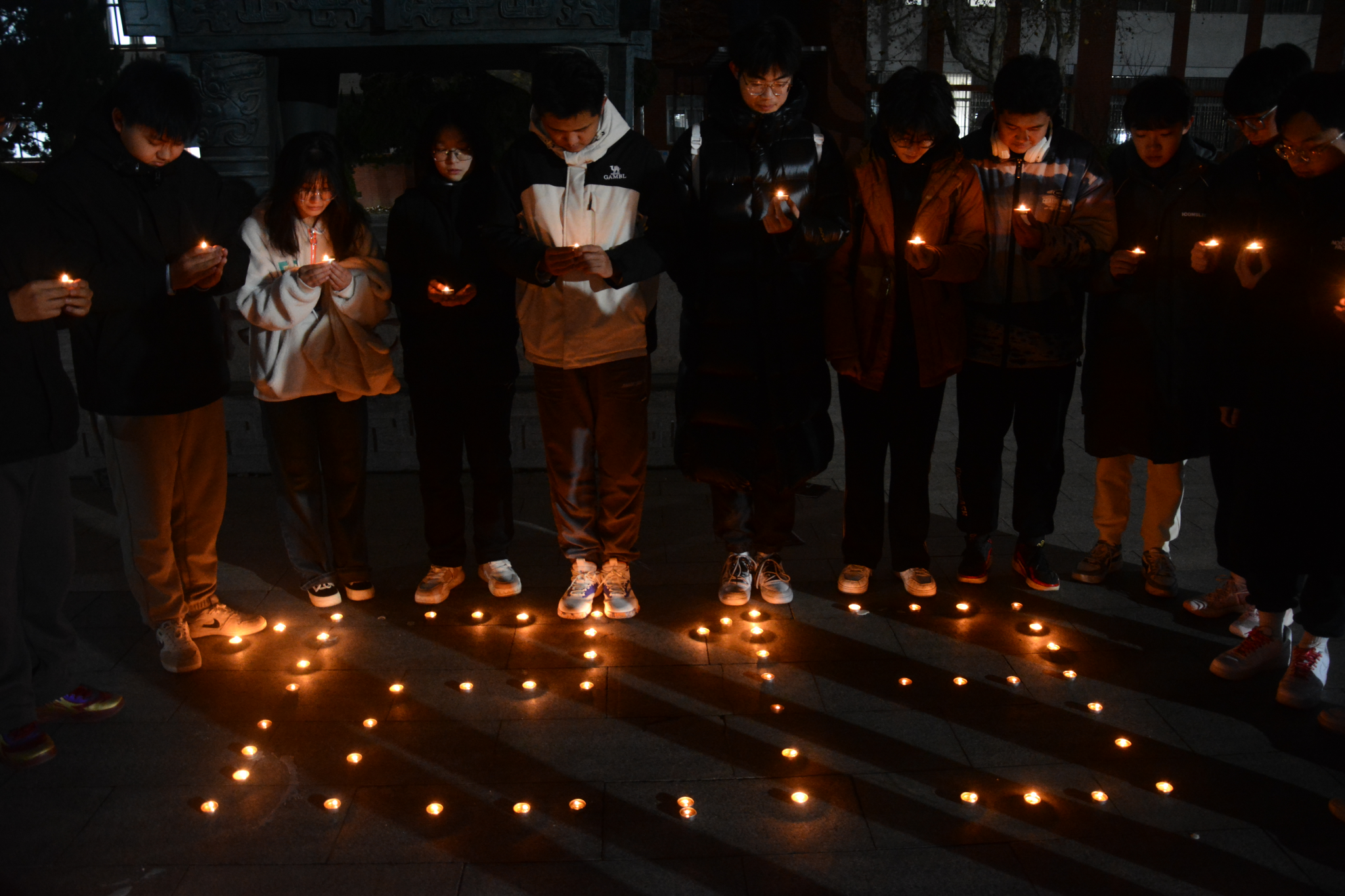 12月12日晚,学院团委组织各年级100多名学生在通灌校区前程餐厅北广场开展“国殇之日心同怀、 烛光点点祭哀思”主题活动。同学们将蜡烛摆成“12.13”字样,手捧蜡烛,在寒风中静立,低头静默哀悼。路过的同学也纷纷自愿加入活动中,一起用烛光追思南京大屠杀死难者,缅怀在86年前那场人类浩劫中不幸罹难的同胞,共同祈愿世界远离战争,永远和平。