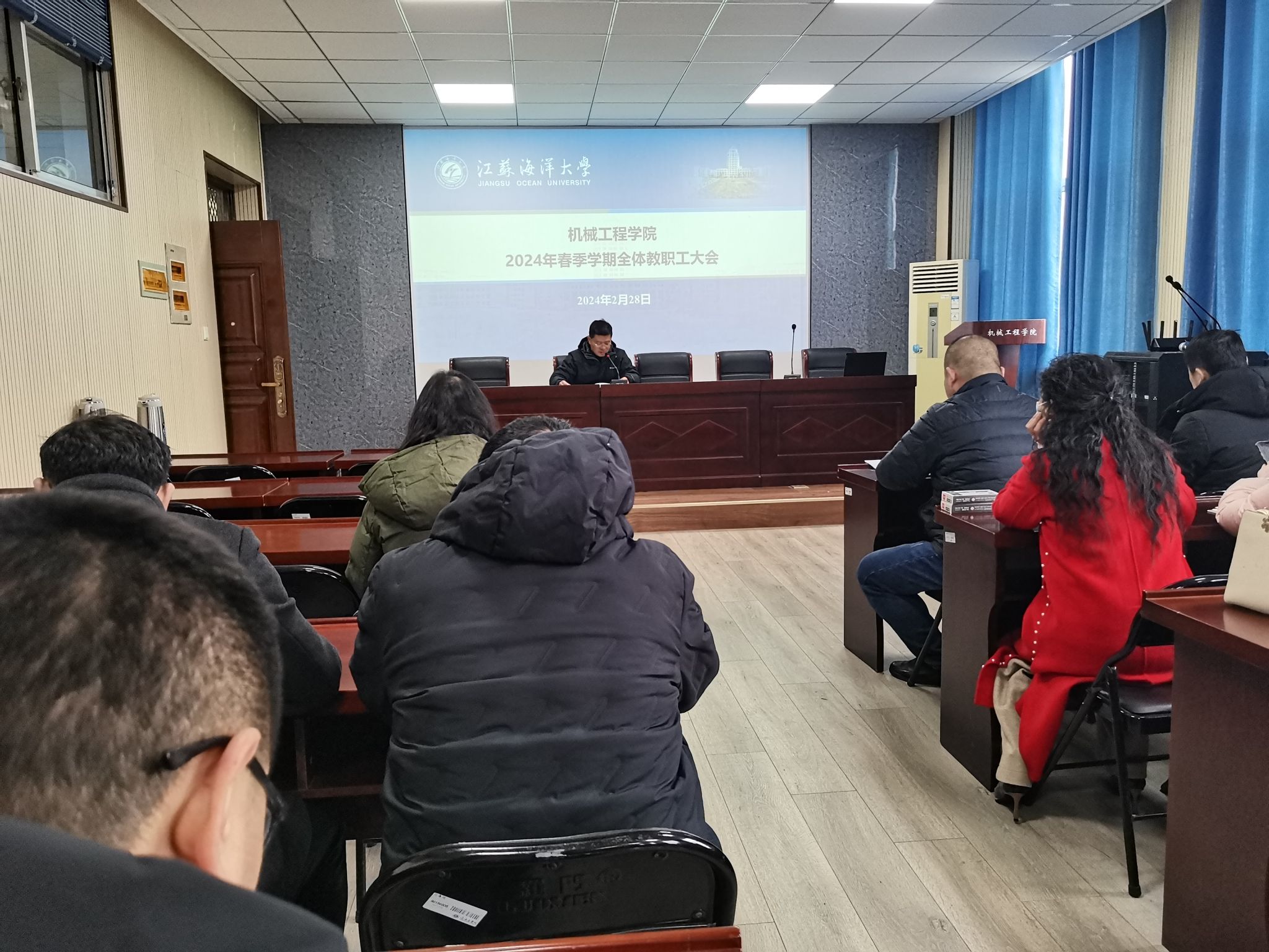 2月28日下午,机械工程学院召开2024年春季学期期初全体教职工大会,传达学校2024年党政工作布置会精神,总结2023年工作,深入分析当前形势,安排部署学院2024年重点任务。党委书记王秋玉主持会议并讲话。党委副书记高勇、副院长贺毅强、副院长丁云飞分别布置工作。