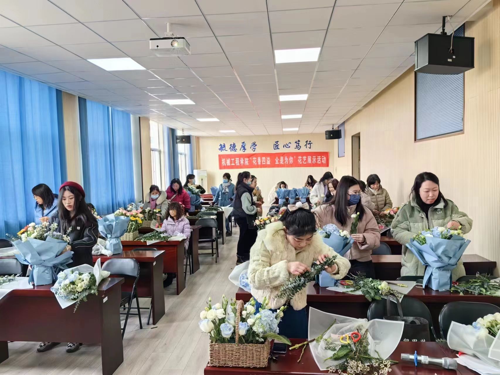 为迎接第114个三八国际妇女节,丰富女教师的业余生活,机械工程学院于3月6日下午举办了一场主题为“花香四溢,全是为你”的花艺展示活动,学院全体女教师参加。