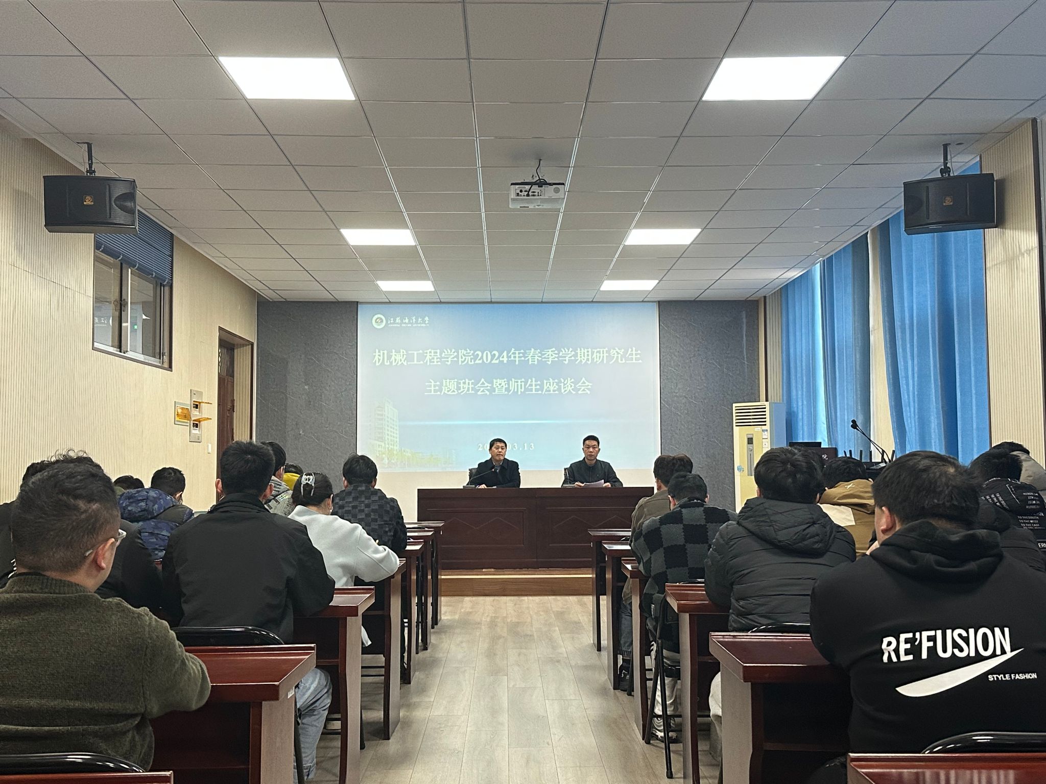 奋楫扬帆谱新篇,挺膺担当向未来。3月13日下午,机械工程学院2024年春季学期研究生主题班会暨师生座谈会在机械楼N210会议室召开,院党委副书记高勇、副院长贺毅强,研究生辅导员马奔传和全体在校研究生参加。