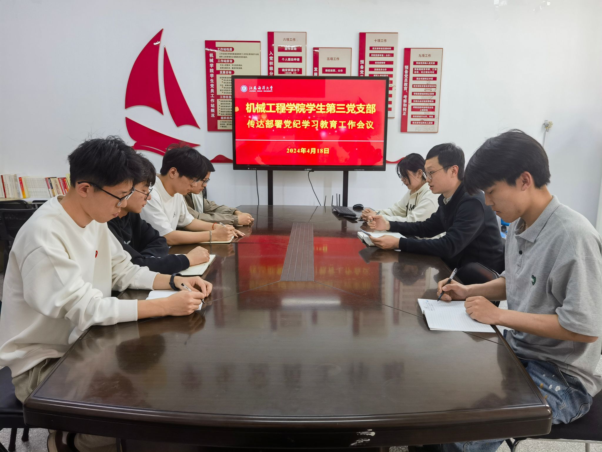 4月18日,机械工程学院各党支部分别召开党员大会,深入学习贯彻习近平总书记关于党纪学习教育的重要讲话和重要指示精神、中央党的建设工作领导小组会议精神,传达学校党纪学习教育工作部署会精神,认真落实《中共江苏海洋大学委员会关于在全校党员干部中开展党纪学习教育实施方案》要求,动员部署支部开展党纪学习教育。学院党员领导班子成员以普通党员身份参加会议。