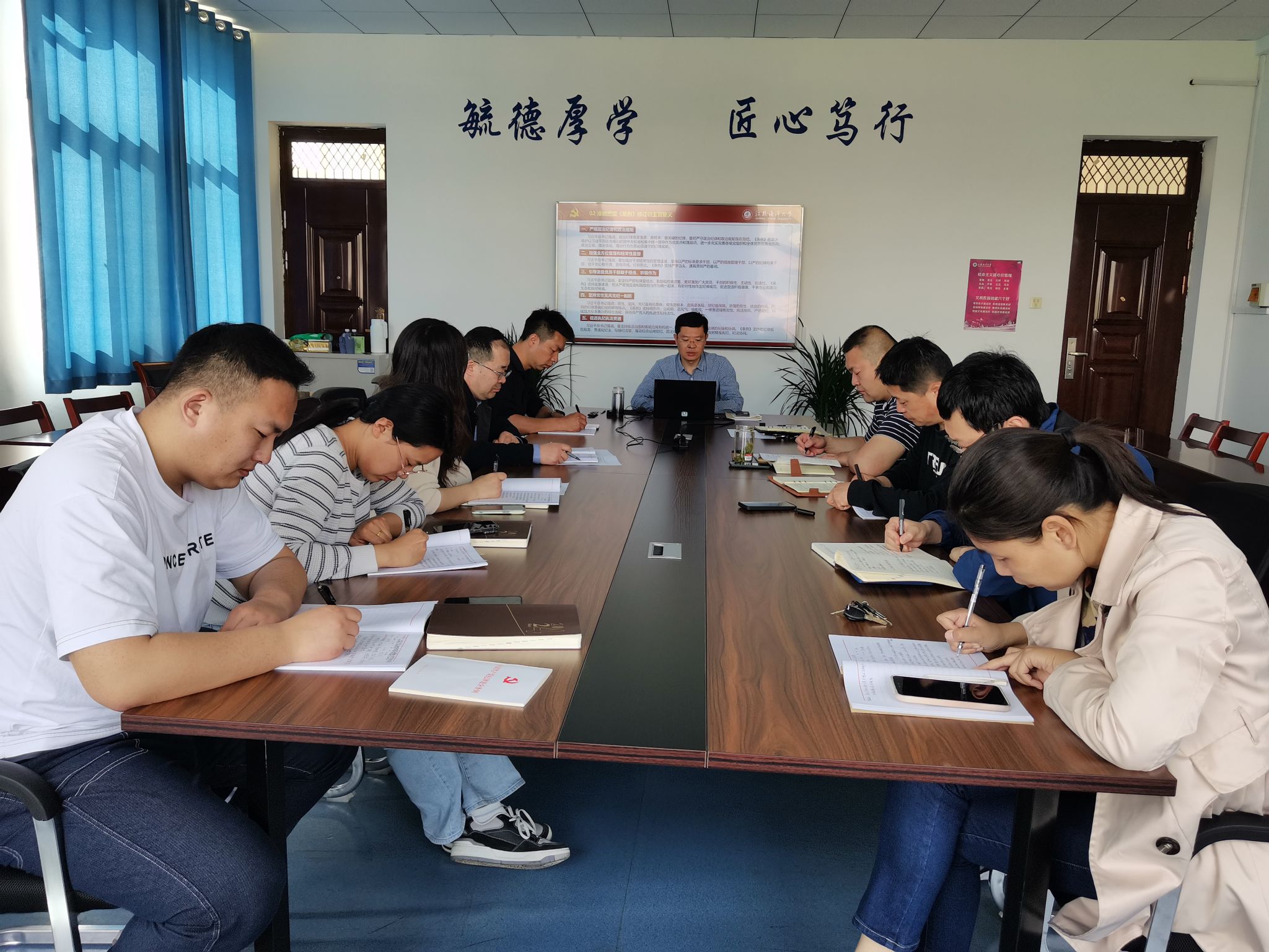 王秋玉指出,党纪学习教育是加强党的纪律建设、推动全面从严治党向纵深发展的重要举措,要深刻认识修订《条例》的重要意义,要切实提高政治站位,把思想和行动统一到党中央关于开展党纪学习教育的决策部署上来。要抓住党纪学习教育重点,准确把握《条例》修订的主旨要义,在学习贯彻《条例》上下功夫见成效。王秋玉强调,扎实开展好党纪学习教育,要在理论学习的基础上开展好警示教育、强化廉洁文化建设。用好二级党组织书记、党支部书记抓党纪学习教育“两张责任清单”,注重融入日常、学用结合,紧密结合学院中心工作,紧密结合思想和工作实际,教育引导广大党员干部学纪、知纪、明纪、守纪,将《条例》作为底线标准,时刻绷紧纪律这根弦。把党纪学习教育同落实党中央重大决策部署、巩固拓展学习贯彻习近平新时代中国特色社会主义思想主题教育成果、完成学院重点工作紧密结合起来,做到两手抓、两促进,把“严”和“实”的作风贯穿始终,切实把党纪学习教育成效转化为高质量发展成果。
