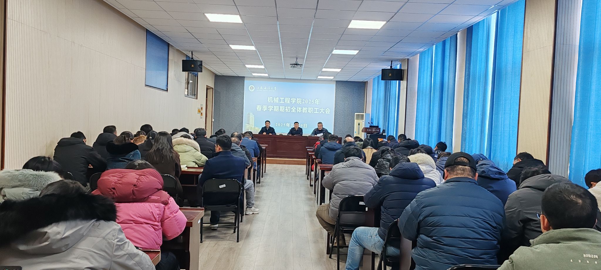 2月19日下午,机械工程学院召开2025年春季学期期初全体教职工大会,传达学校2025年度党政工作布置会精神,总结2024年工作,分析当前学院事业发展面临的机遇与挑战,安排部署2025年重点任务。副院长丁云飞(主持工作)布置工作,党委副书记高勇就分管工作进行具体安排,党委书记王秋玉作总结讲话。
