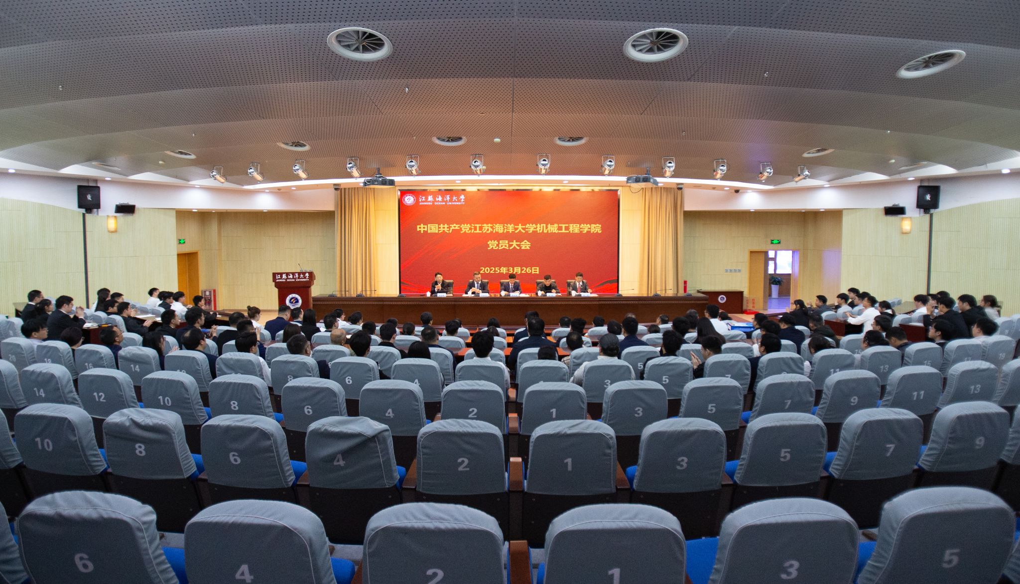 大会的主题是:坚持以习近平新时代中国特色社会主义思想为指导,深入贯彻党的二十大和二十届二中、三中全会精神,全面落实全国全省教育大会和学校第一次党代会精神,系统总结过去五年的主要工作,提出今后五年的工作思路,选举产生中国共产党江苏海洋大学机械工程学院新一届委员会,以党的政治建设为统领,牢牢把握教育的政治属性、人民属性、战略属性,紧紧围绕立德树人根本任务,深化内涵建设,勇于改革创新,为开创学院事业高质量发展新局面而团结奋斗。