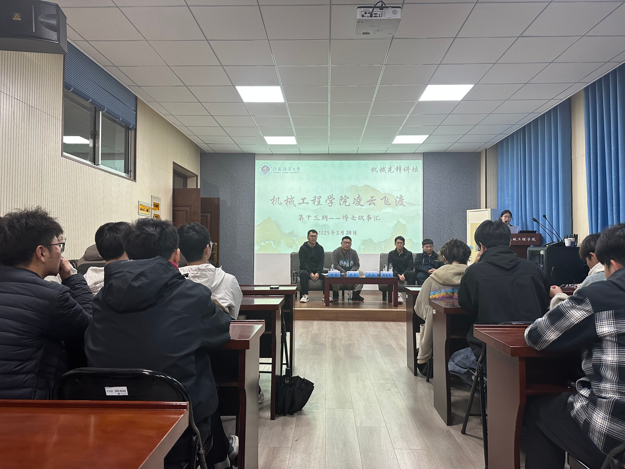 为了搭建学生与优秀青年博士教师交流平台,助力学生成长,3月28日,机械工程学院在机械楼N210会议室举行第十三期“凌云飞渡”访谈活动暨机械先锋讲坛—博士故事汇。机械工程学院青年博士冯聪、张家浩、姚凯、蒋跃受邀出席,来自学院近百余名学生参加此次活动。