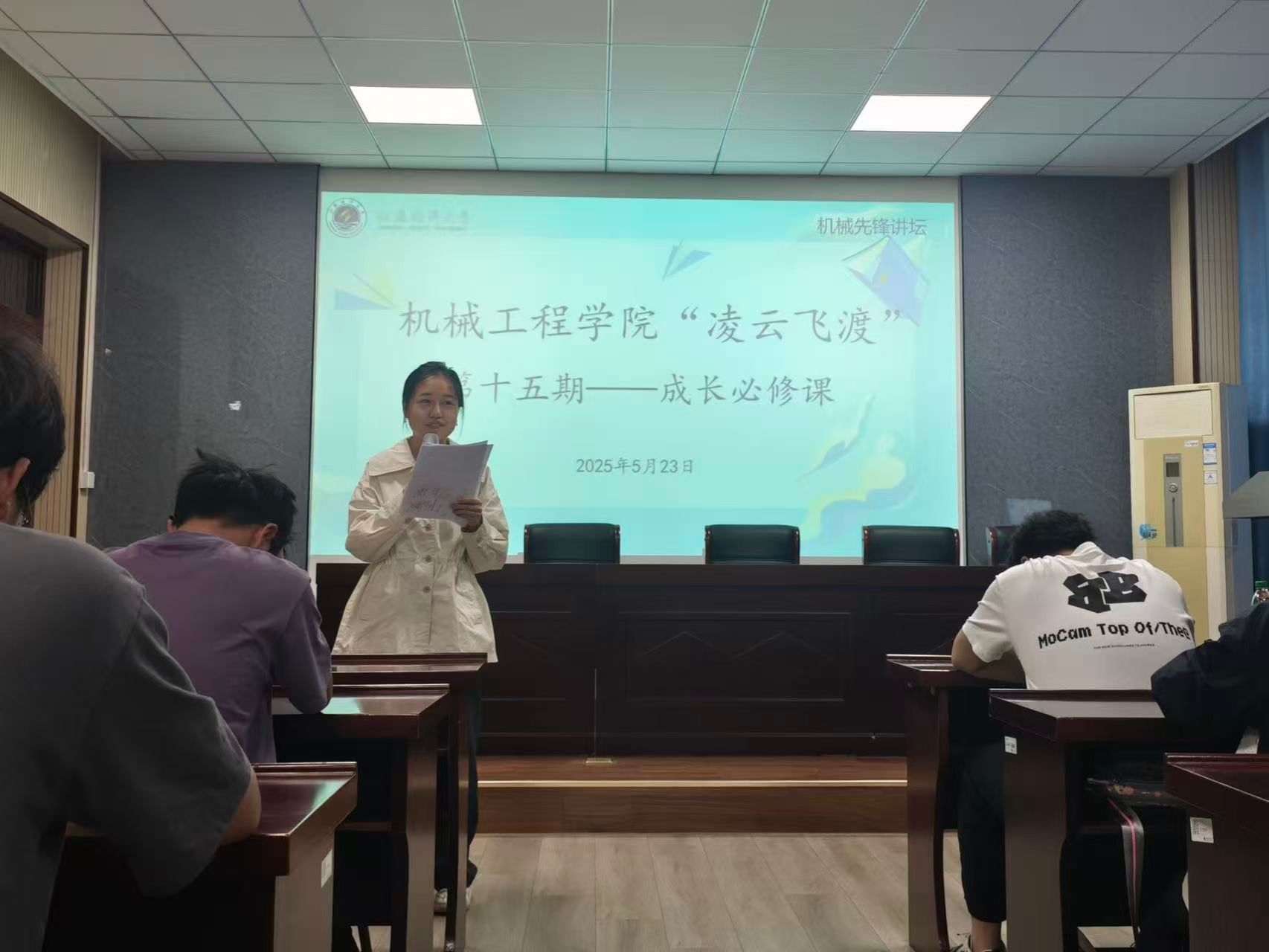 5月23日晚,机械工程学院在机械楼N210举办第十五期“凌云飞渡”访谈活动暨机械先锋讲坛——成长必修课。本次活动邀请了张源皓、马晓燕、陈子豪、郑欣涵四位同学担任主讲嘉宾,分享四位传奇人物的奋斗历程。