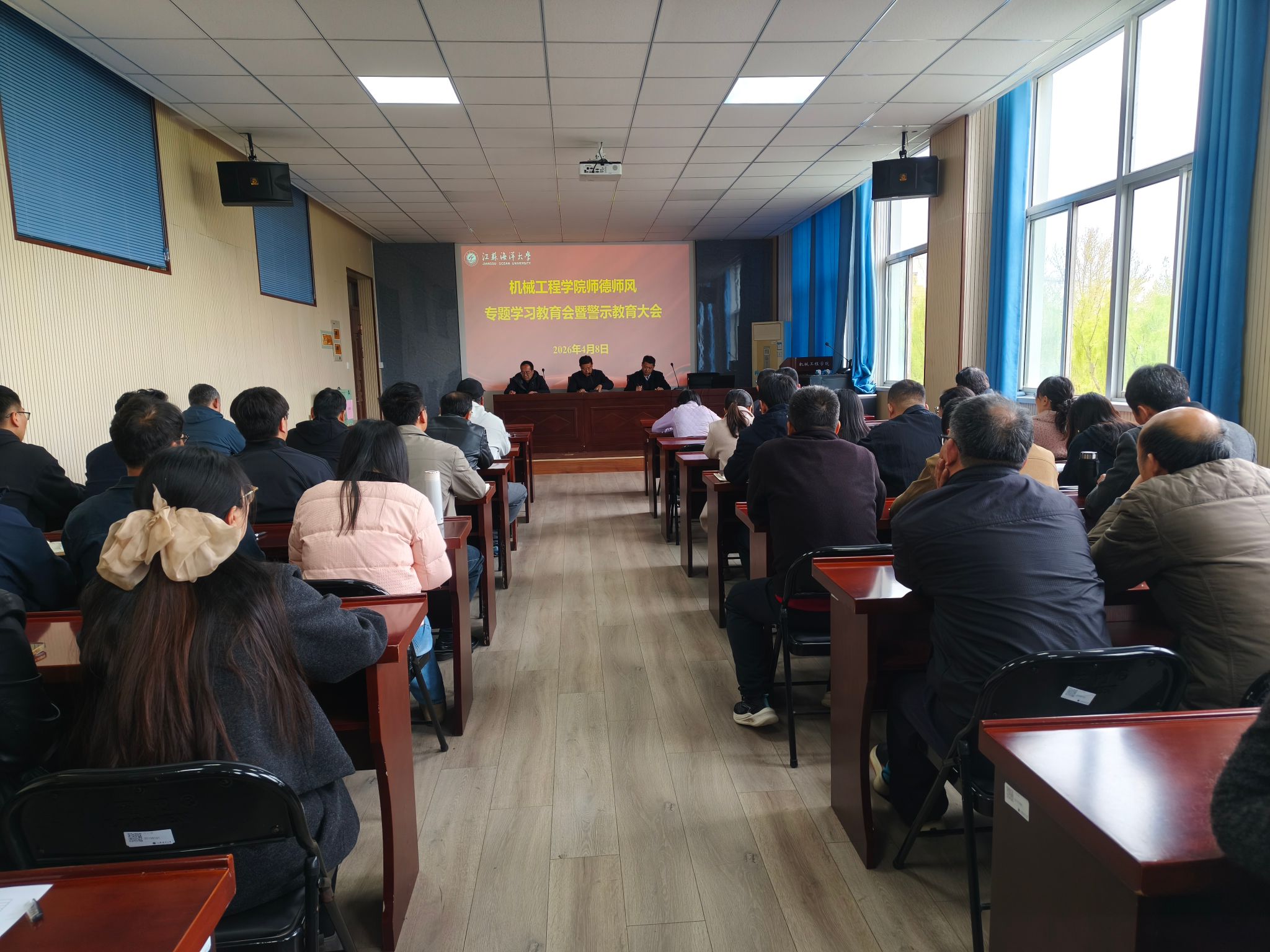 为深入贯彻落实新时代师德师风建设要求,进一步加强教师队伍思想政治建设和职业道德修养,借助典型案例开展警示教育,引导全体教师严守师德规范、恪守职业底线、廉洁从教育人,坚决杜绝师德失范行为,营造风清气正的教育教学环境,4月8日下午,机械工程学院召开师德师风专题学习教育会暨警示教育大会。全体教职工参加会议,党委书记王秋玉主持会议。