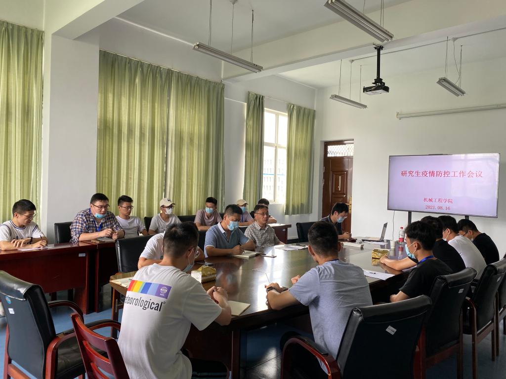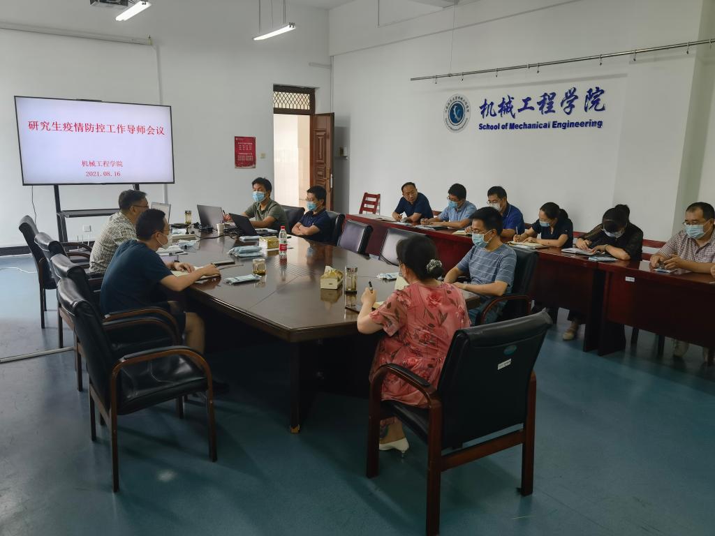 8月16日上午,机械工程学院在机械楼三楼会议室召开研究生疫情防控工作专题会议,分析了当前学校研究生疫情防控工作形势,针对下一阶段的疫情防控和教育管理进行再部署、再强化、再落实。学院领导班子、研究生导师、辅导员及全体研究生参加会议。党委书记陈书法主持会议。