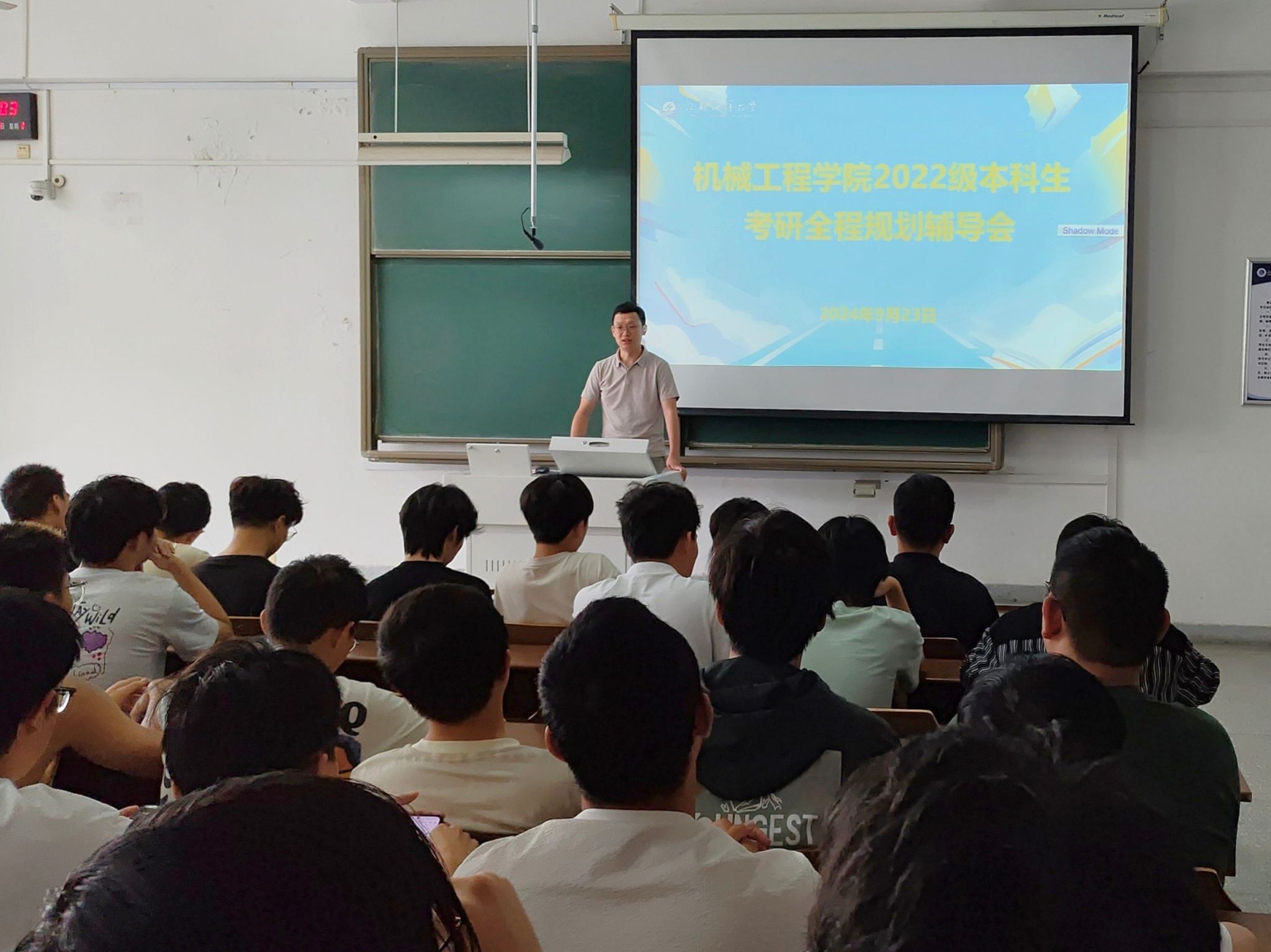 为帮助学生科学规划考研路径,提振考研信心,激发考研热情,9月23日下午,机械工程学院在苍梧校区文通楼307教室举办2022级本科生考研全程规划辅导会。学院党委副书记高勇、研究生秘书李同清、学工办副主任陈晓龙、万学教育集团金牌考研讲师庄迎萍,2022级和部分2023级共150余名有意向考研的学生到场参会。