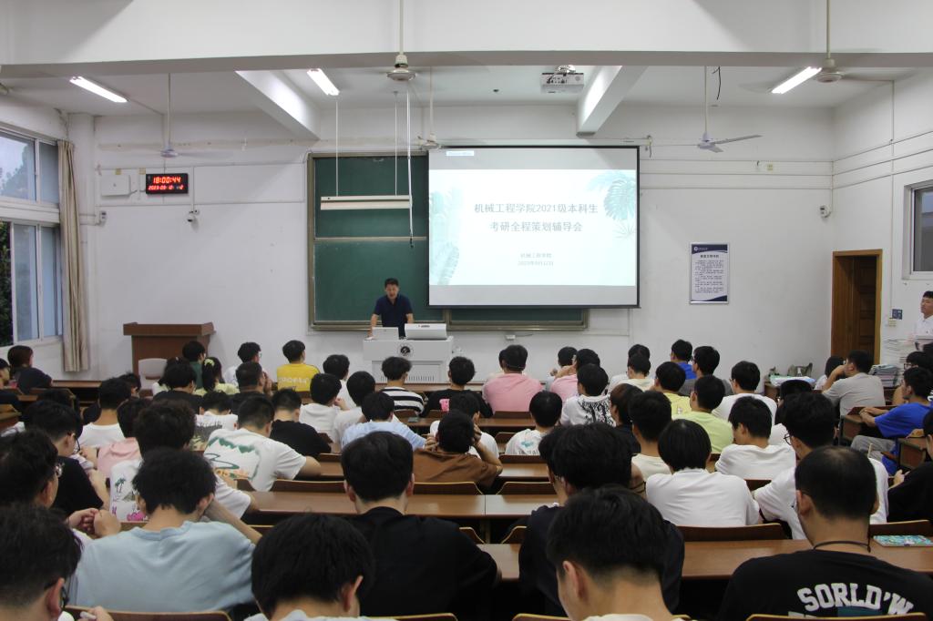 为全力做好学生考研指导和服务工作,帮助学生坚定考研信心,合理规划考研进程,9月13日晚上,机械工程学院在文通楼225教室举办2021级本科生考研全程策划辅导会。学院党委副书记高勇、研究生秘书李同清、学工办副主任陈晓龙、万学教育集团考研高级规划师余生,2021级和部分2022级150余名有意向考研学生到场参加。