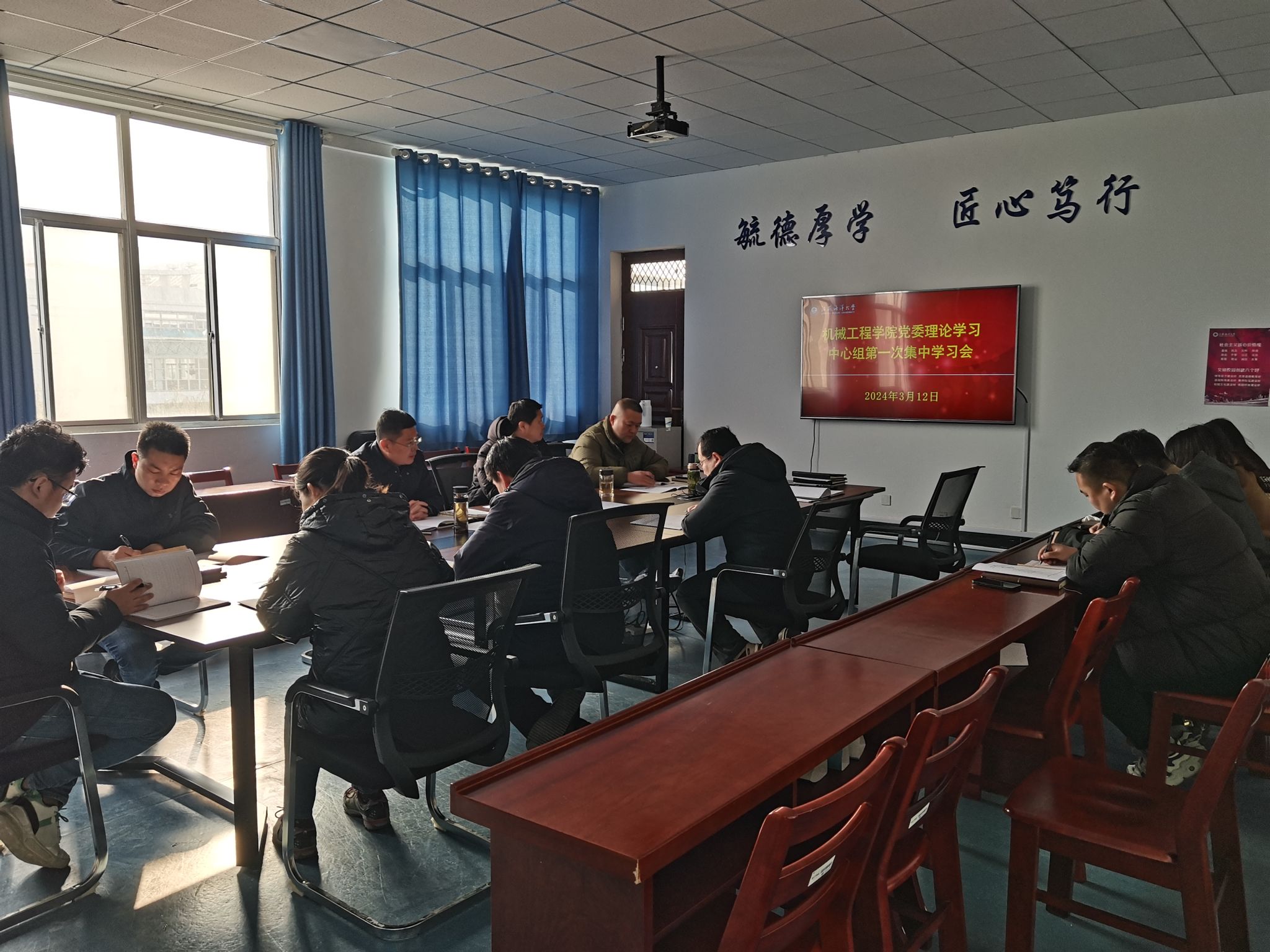 3月12日,机械工程学院党委理论学习中心组举行学习会,学习贯彻2024年全国教育工作会议精神,学习《党史学习教育工作条例》(以下简称《条例》),深入学习领会习近平总书记在中共中央政治局第十一次集体学习时的重要讲话精神,以及习近平总书记在参加十四届全国人大二次会议江苏代表团审议时关于发展新质生产力的重要论述。党委书记王秋玉主持会议并讲话,党委委员、学院领导班子成员、党支部书记、党政办公室主任参加。部分与会人员作交流发言。