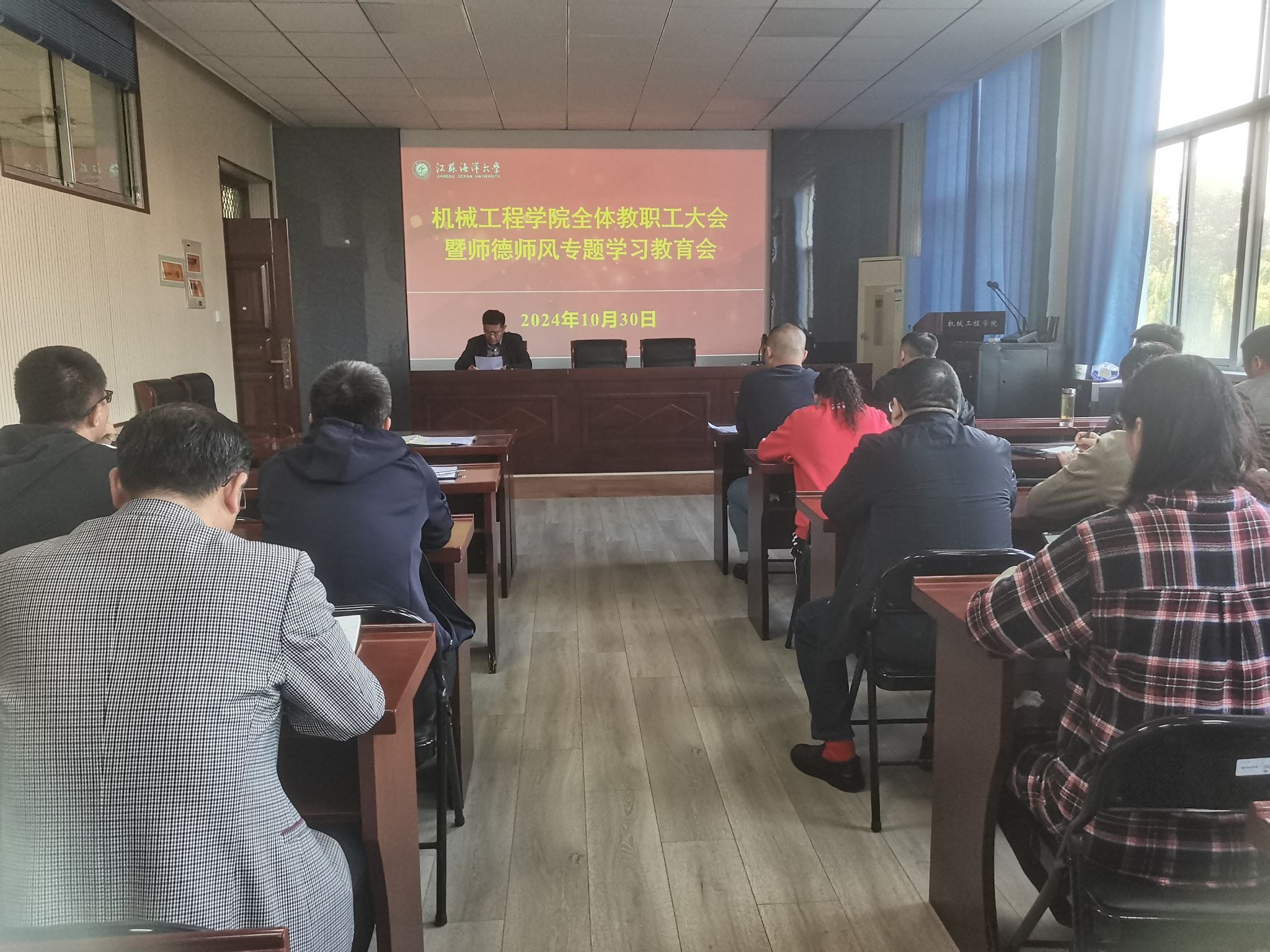 为进一步加强学院师德师风建设,深入贯彻落实习近平总书记关于大力弘扬教育家精神的重要指示,引导学院教职工准确把握师德师风第一标准的深刻内涵,10月30日下午,机械工程学院召开师德师风专题学习教育会,全体教职工参加,党委书记王秋玉主持会议。
