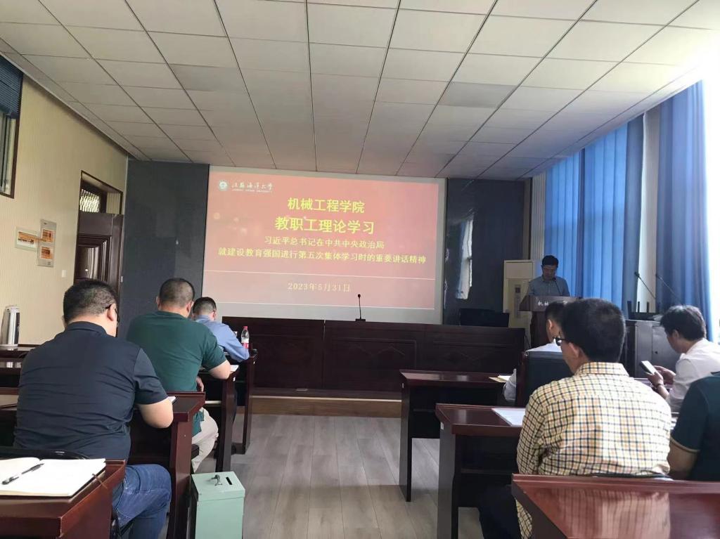 5月29日下午,中共中央政治局就建设教育强国进行第五次集体学习,习近平总书记主持学习并发表重要讲话。机械工程学院第一时间跟进学习,于5月31日下午,组织全院教职工专题学习习近平总书记在中共中央政治局第五次集体学习时的重要讲话精神。党委书记王秋玉主持会议。