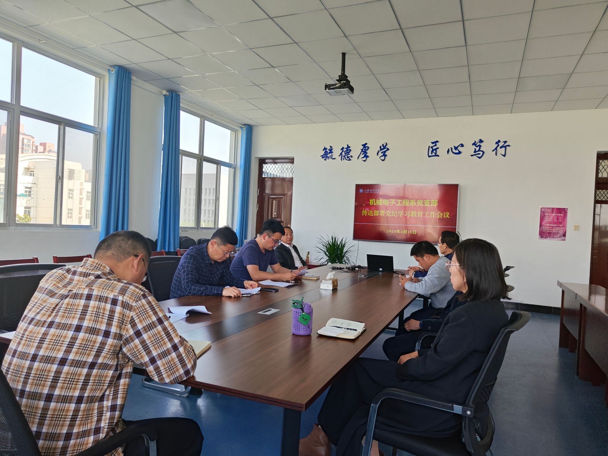 4月18日,机械工程学院各党支部分别召开党员大会,深入学习贯彻习近平总书记关于党纪学习教育的重要讲话和重要指示精神、中央党的建设工作领导小组会议精神,传达学校党纪学习教育工作部署会精神,认真落实《中共江苏海洋大学委员会关于在全校党员干部中开展党纪学习教育实施方案》要求,动员部署支部开展党纪学习教育。学院党员领导班子成员以普通党员身份参加会议。