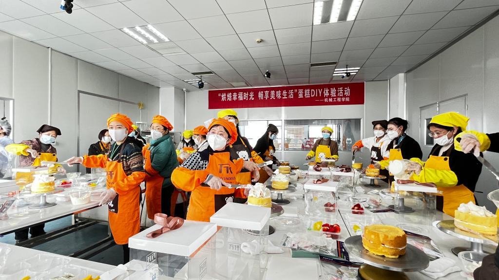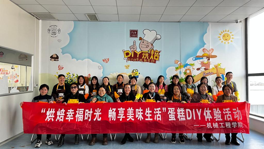 阳春三月莺恰啼,芳菲绘彩蝶翩跹。为迎接第113个“三八”国际劳动妇女节的到来,3月8日下午,机械工程学院分工会组织全院二十余名女教师,来到连云港市万千糕饼有限公司,以“烘焙幸福时光,畅享美味生活”为主题,开展丰富多彩的蛋糕DIY体验活动,庆祝属于自己的美好节日。