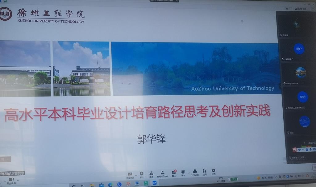 9月22日下午,机械工程学院召开优秀本科毕业设计培育培训会,会议邀请2020届江苏省普通高等学校本科优秀毕业设计(论文)一等奖指导教师,徐州工程学院郭华锋博士作了题为《高水平本科毕业设计培育路径思考及创新实践》的专题报告。本次会议通过腾讯会议形式进行,机械工程学院全体教师、创新创业学院部分指导教师参加了会议。