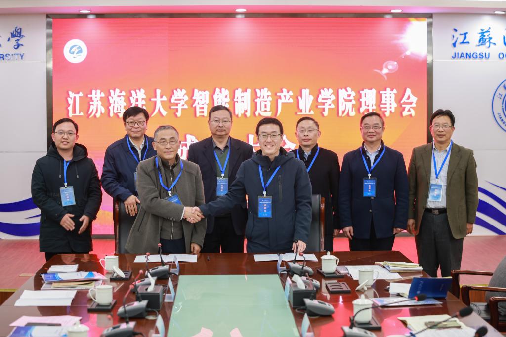 宁晓明宣读了理事会、专家委员会、管理结构组成人员名单并颁发聘书。产业学院院长张元良代表江苏海洋大学与三家合作单位签订了合作协议。合作单位代表刘永能、杨庆洪、骆丹分别就各自单位的发展规划以及与智能制造产业学院对接工作进行了介绍和展望。张元良代表智能制造产业学院对下一阶段发展目标作了表态发言。