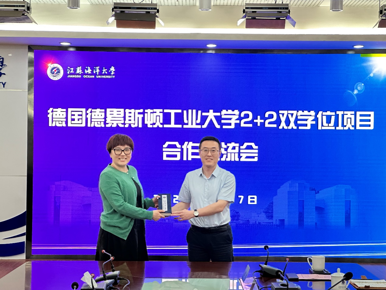 张巍女士感谢江苏海洋大学的盛情接待,并详细介绍了德累斯顿工业大学的办学理念、学科优势以及国际化发展战略。她指出,江苏海洋大学具有良好的学科基础和发展潜力,双方合作前景广阔。德方愿与我校密切配合,扎实推进2+2双学位项目,共同培养具有国际竞争力的高素质工程技术人才。