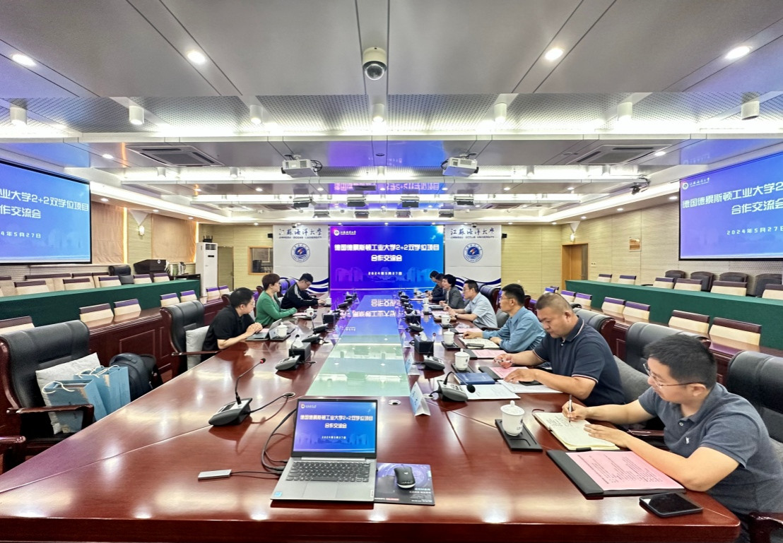 5月26日,德国德累斯顿工业大学高级研究院中国分院院长张巍、执行院长阮毅敏、市场总监黄睿来校,就合作开展机械设计制造及其自动化专业2+2双学位项目交流磋商。江苏海洋大学副校长兼机械工程学院院长张元良、教务处处长安俊丽、国际交流与合作处处长韩小杰、副处长陈倩,创新创业学院常务副院长陈劲松,机械工程学院党委书记王秋玉、副书记高勇、副院长丁云飞,国际交流合作处修欣,机械工程系副主任冯文参加会议。