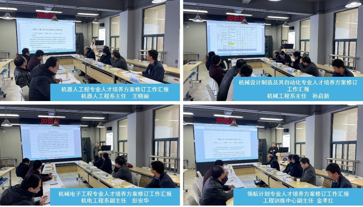 机械工程学院机器人工程系主任王晓丽、机械工程系主任孙启新、机械电子工程系副主任彭安华、创新创业学院副院长金孝红依次向论证专家介绍了2024级培养方案的修订情况。2024级培养方案遵循《普通高等学校本科专业类教学质量国家标准》,按照学校的2024版本科人才培养方案修订指导意见进行修订,兼顾工程教育专业认证的相关要求。各专业培养方案从培养目标、毕业要求和课程体系设置等方面进行了全方位修订,特别在产教融合、国际化、涉海特色课程、实践课程比例等方面进行了较大调整,包括校企共建类课程的开设、项目制课程的设计、课程学分学时的设置等,以期进一步提升人才培养质量。