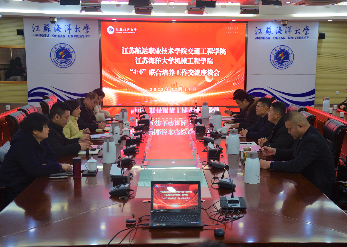上午11时,双方在学术会议中心东海厅举行“4+0”学生联合培养工作交流座谈会。江苏航运职业技术学院交通工程学院党总支书记黄晓芬、副书记申高峰、副院长李胜永、港机教研室主任胡慧慧、学工科科长顾玲玲,我校机械工程学院党委书记王秋玉、副书记高勇、副院长贺毅强、丁云飞、学工办副主任陈晓龙与“4+0”本科班全体学生参加座谈,座谈会由高勇主持。
