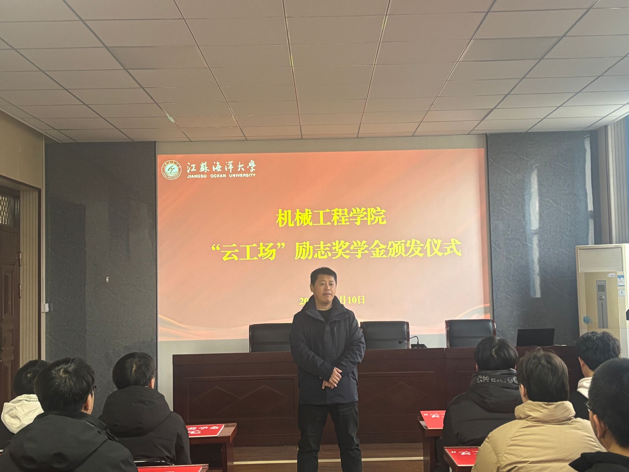 12月10日下午,机械工程学院在机械楼N210举办“云工场”励志奖学金颁发仪式,学院党委副书记高勇出席并为10名获奖学生颁奖。