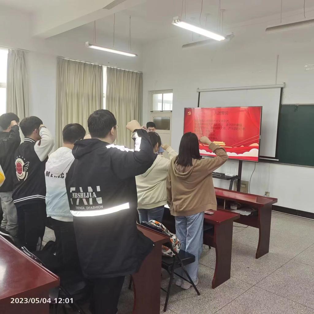 5月4日,组织学院团学骨干在机械楼N202开展“重温入团誓词,践行时代使命”主题活动。旨在充分激发青年学生作为共青团员的光荣感和责任感,坚定理想信念,增强历史使命感和社会责任感。督促青年应时刻牢记初心使命,踔厉奋发、砥砺前行,做共产主义远大理想和中国特色社会主义共同理想的坚定信仰者和忠诚实践者,为实现中华民族伟大复兴的中国梦贡献青春力量。