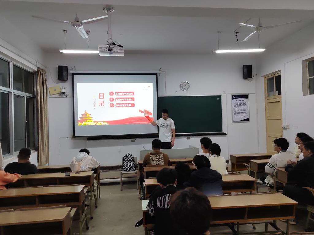 5月4日,组织学院团学组织成员和大一大二班级团支书,在机械楼N202开展“学讲话精神,树理想信念”主题活动,学习习近平总书记对青年的殷殷寄语。在学习中领悟作为新时代大学生的责任和使命,把个人的理想信念融入党和国家的事业发展当中,让青春在火热实践中绽放绚丽之花。